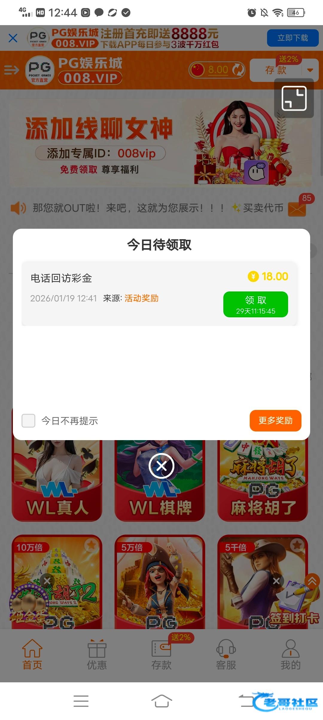 不知道啥时候注册的登录账号里有8,回访彩金18