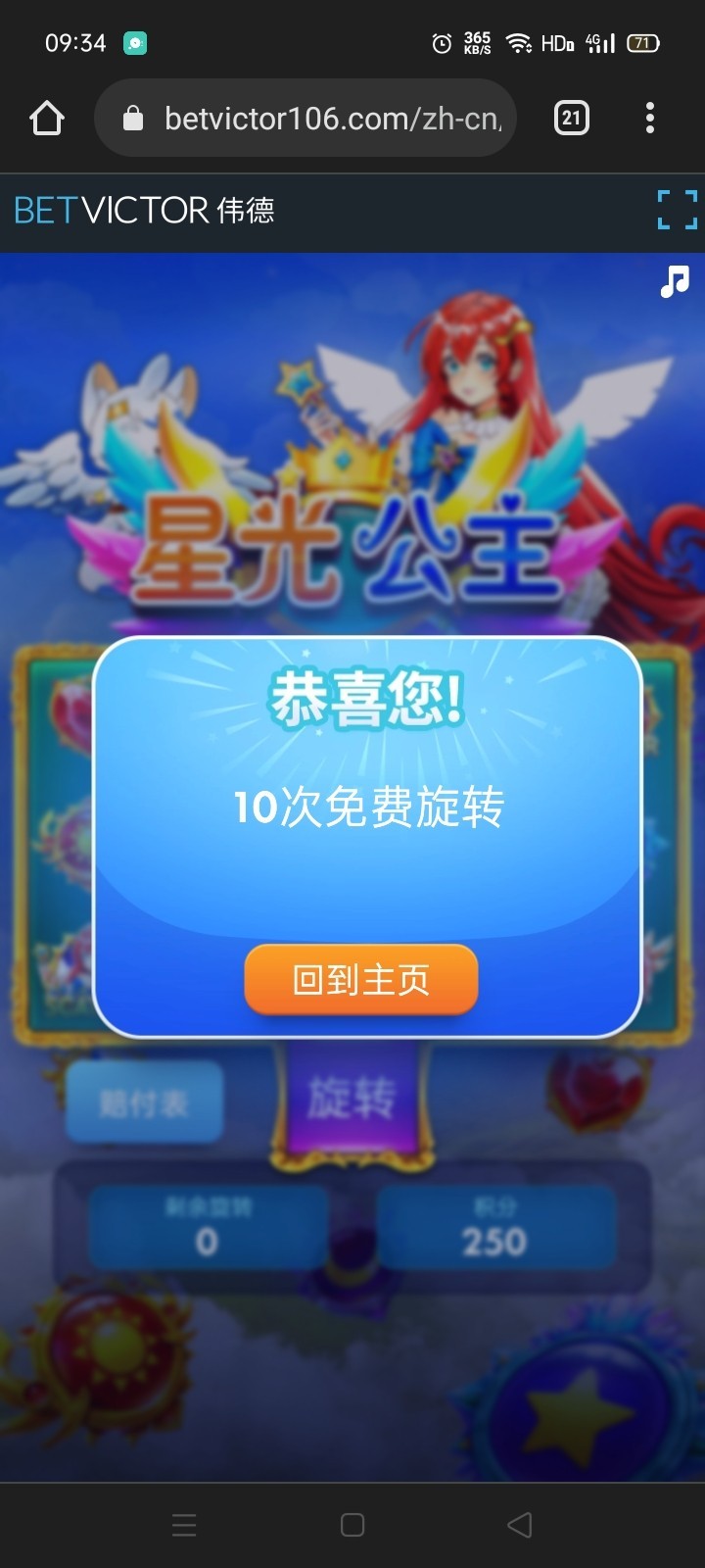 我得了PP星光公主十次免费旋转