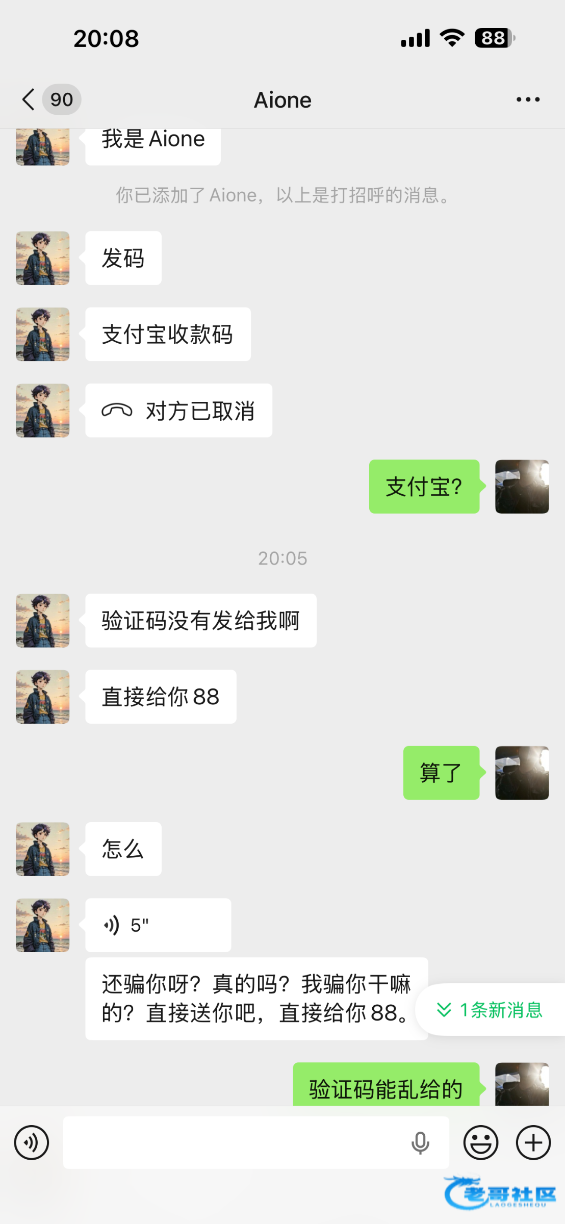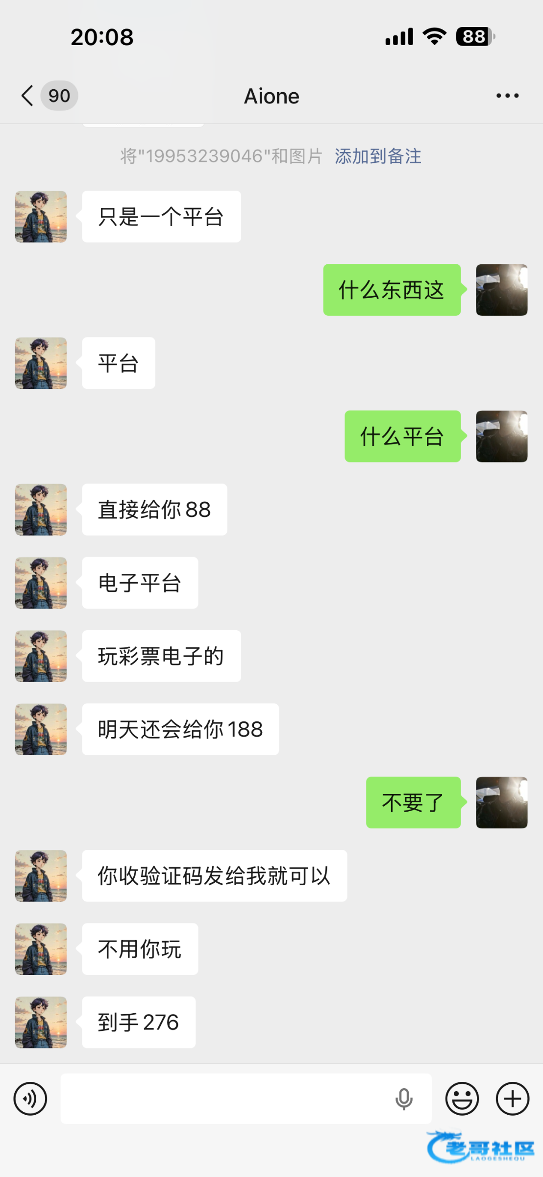 开始电话过来让我加v给88我还以为送彩金,结果一来要验证码