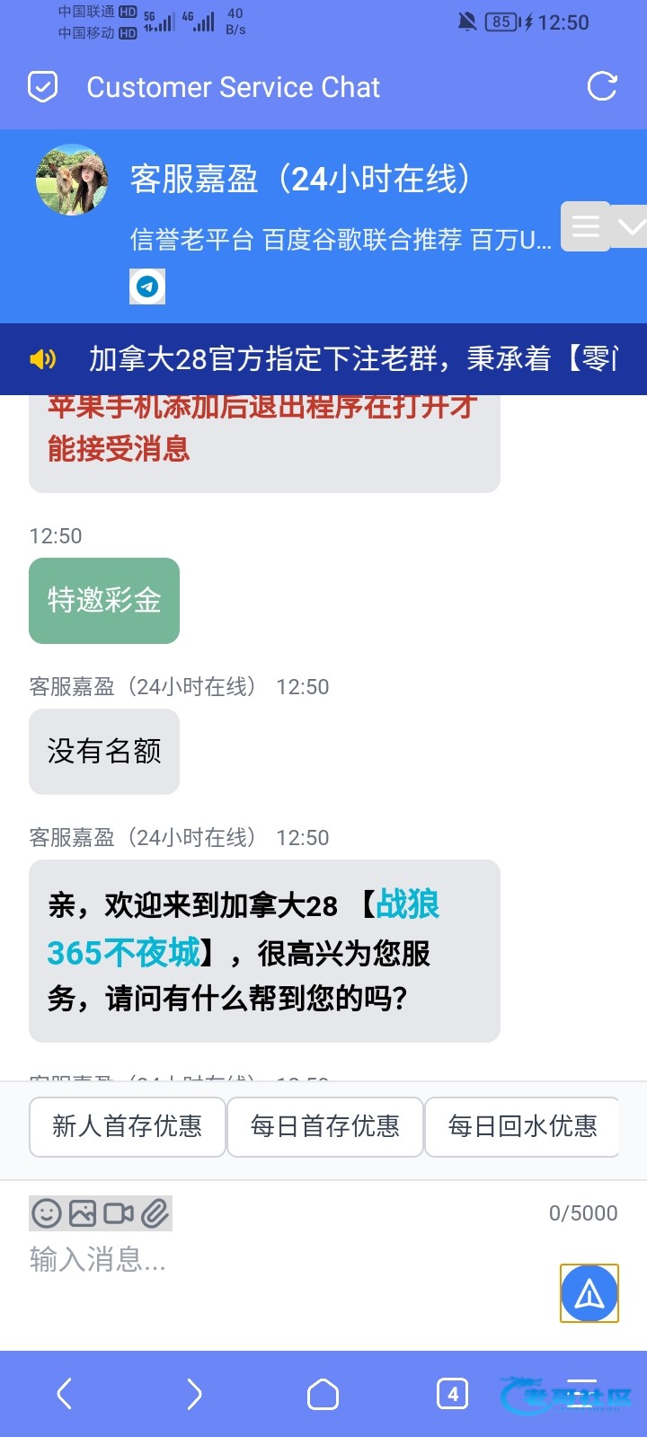 助力有笑,发了句抖音看到的,然后就发了一个滚字,后面客服就打不开了