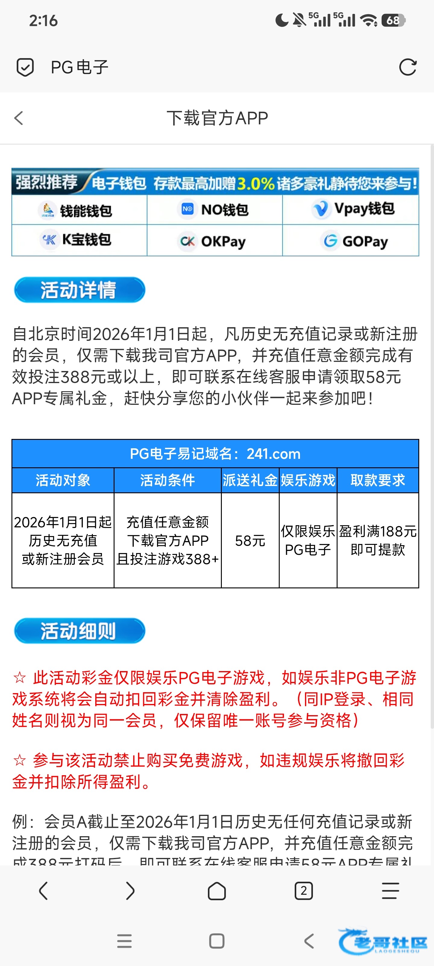 之前领取过下载app的38刚才去又给了58符合条件的可以去看看链接241.com