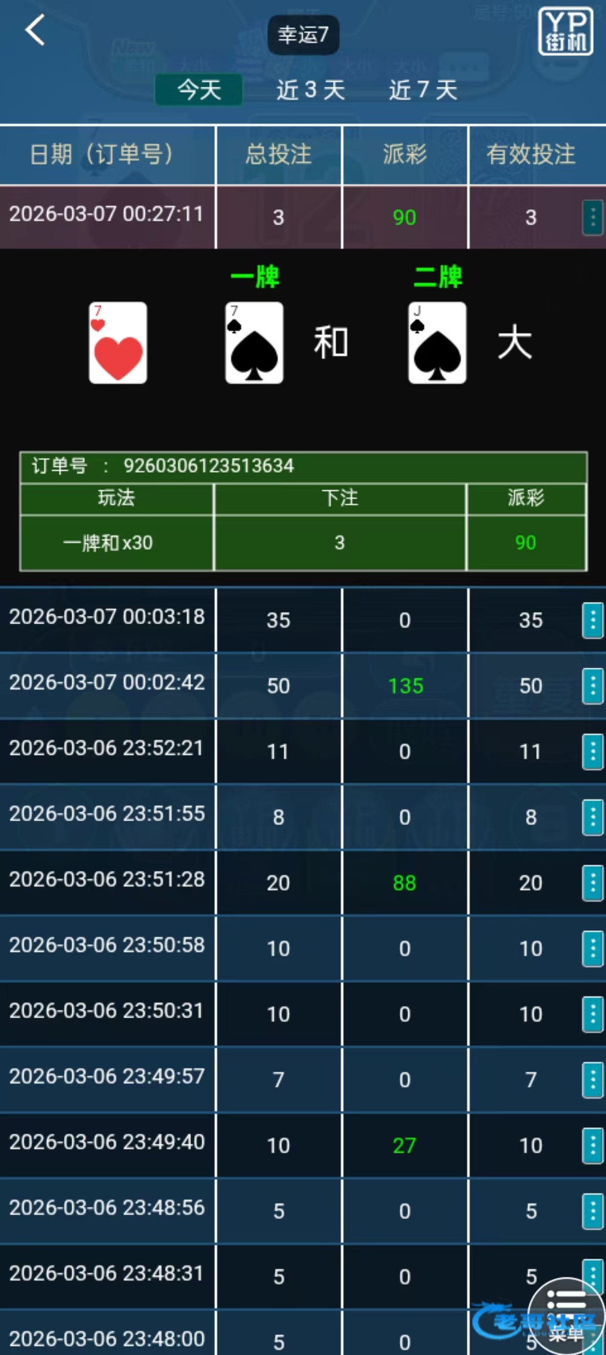 1056反水1块下幸运7的大大中9块,继续下和中了137。最后磨到150提现,反水3块下了和又中90。