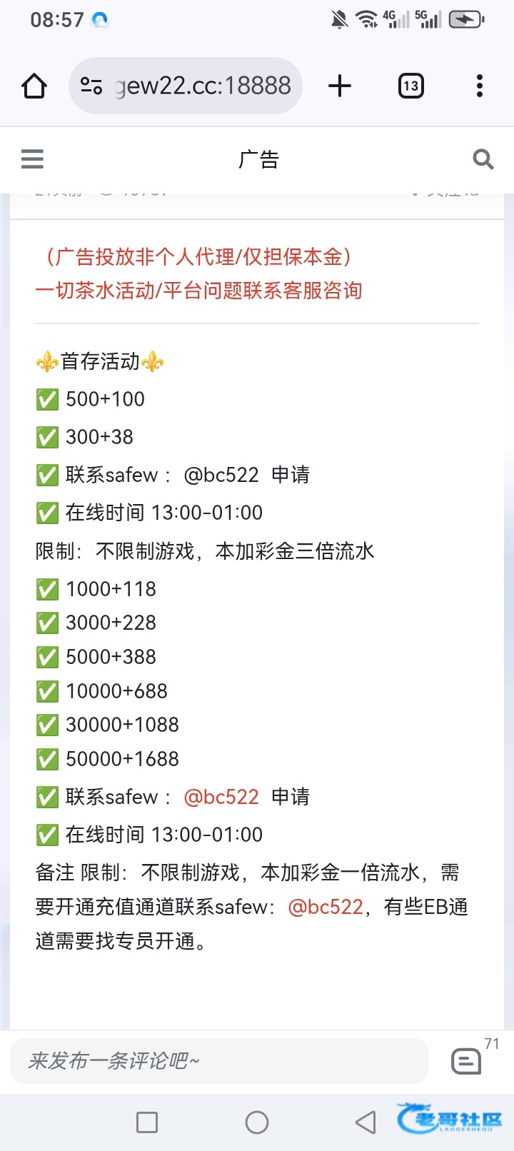 老哥担保不是有个H什么的体育台 3000+228一水 先充3000 磨水的话 真人50跟长龙啊 很容易打的
