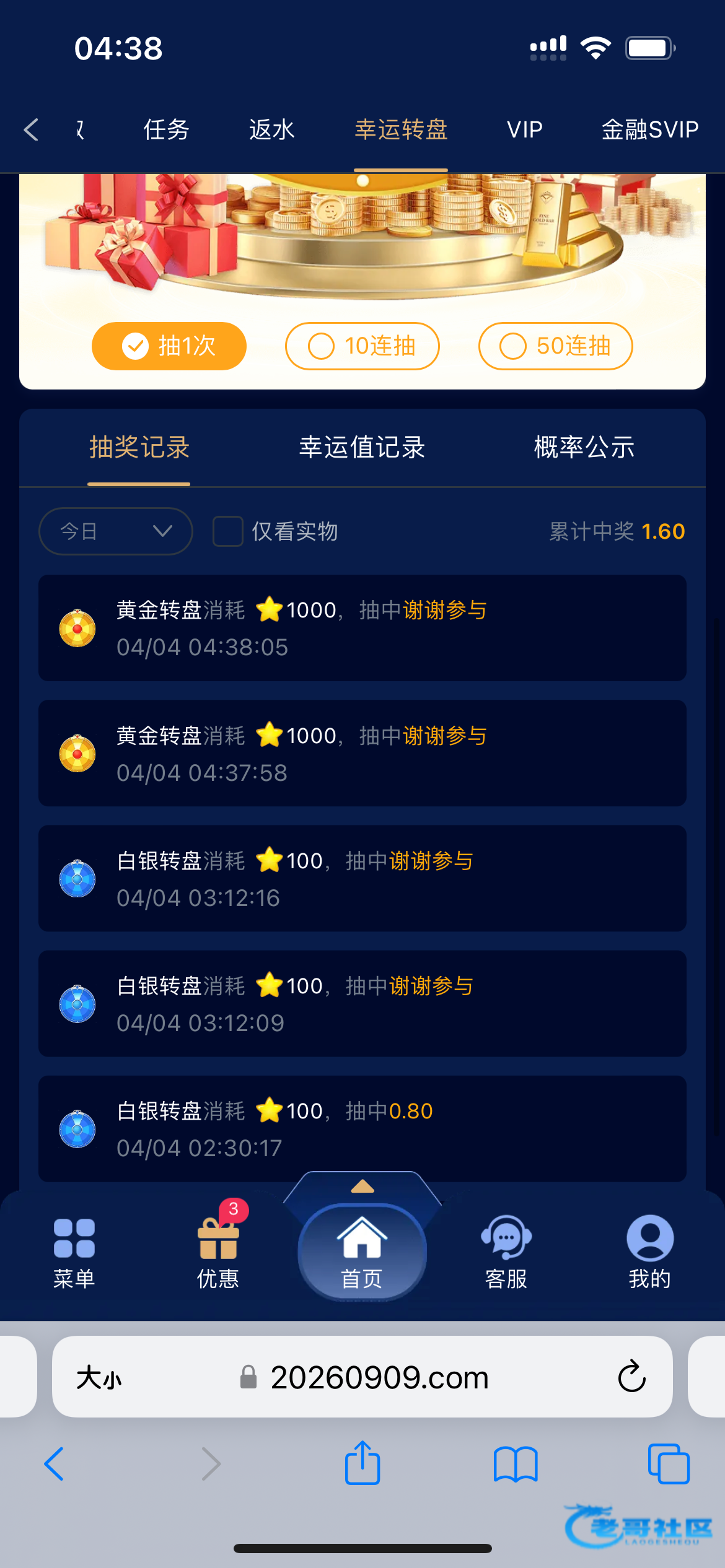 抢都没有你来的快 2k半小时不到全部空 今天一共没2.5k太开心了 第一天还给赢个800第二天一次免都没了