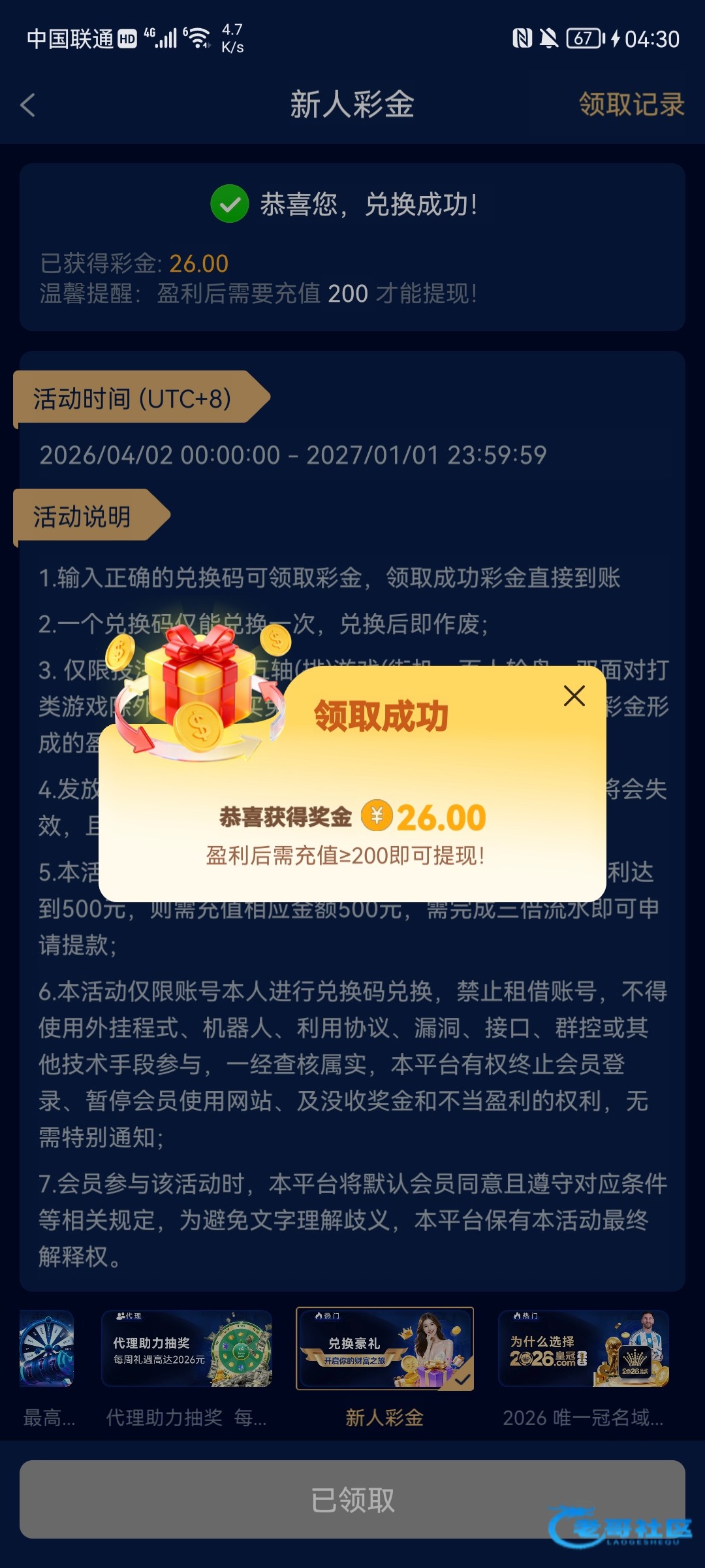 【2026皇冠】⚜️100+100⚜️专属活动