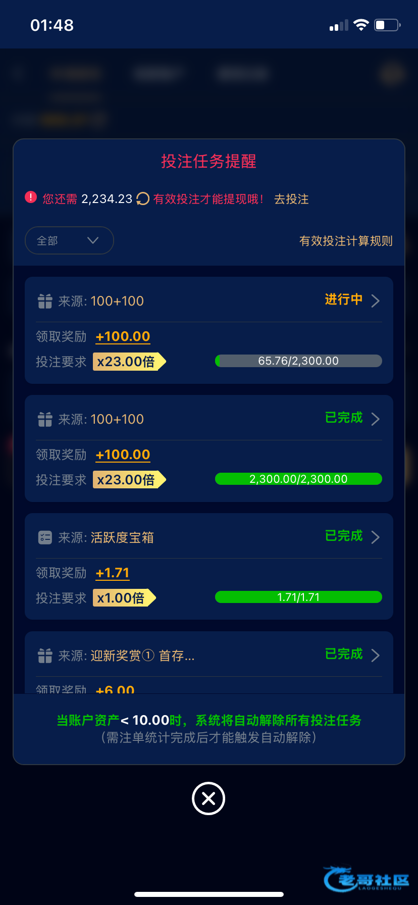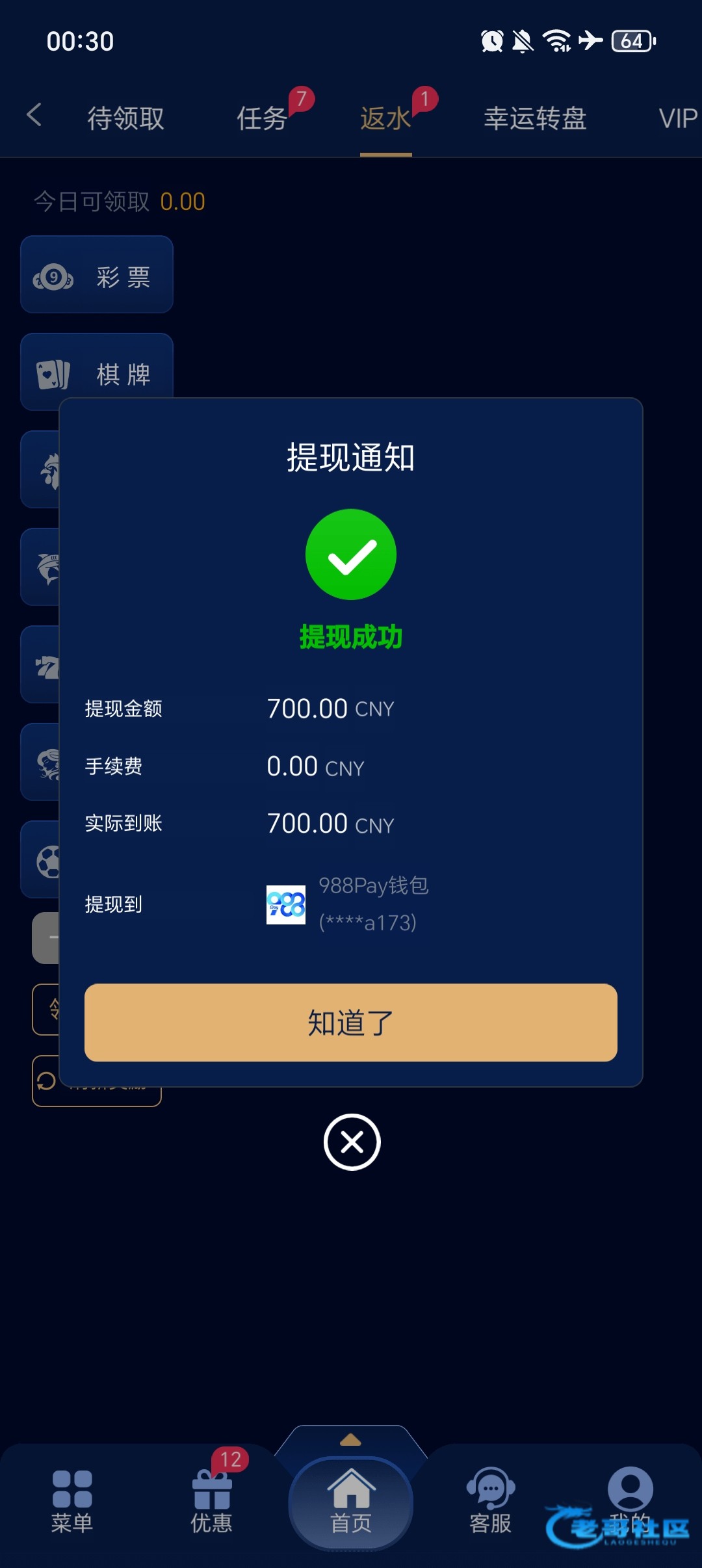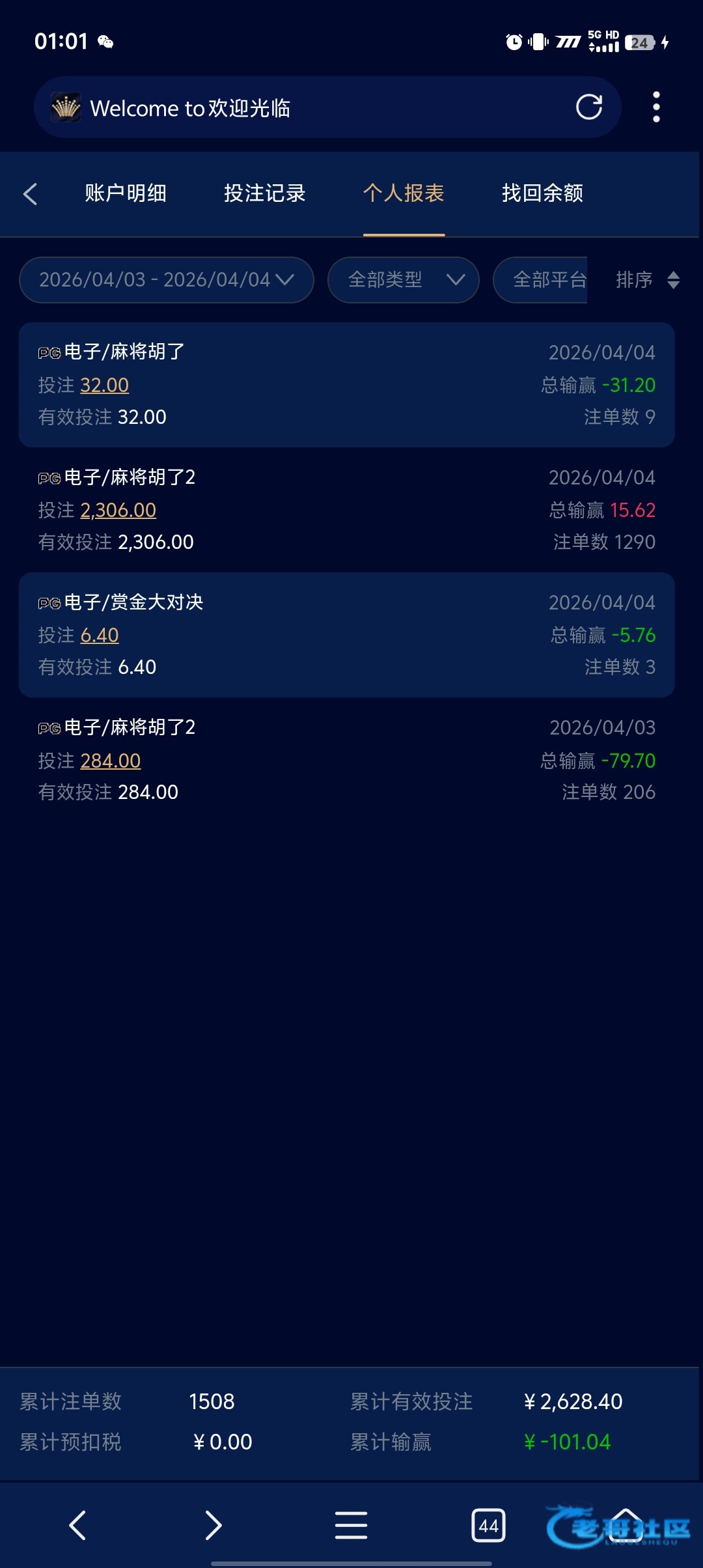 昨天还有一点水,今天麻将拉几百上千手,一个免费都没有,打完流水刚好剩100本金,赶紧提了,你们自己品吧