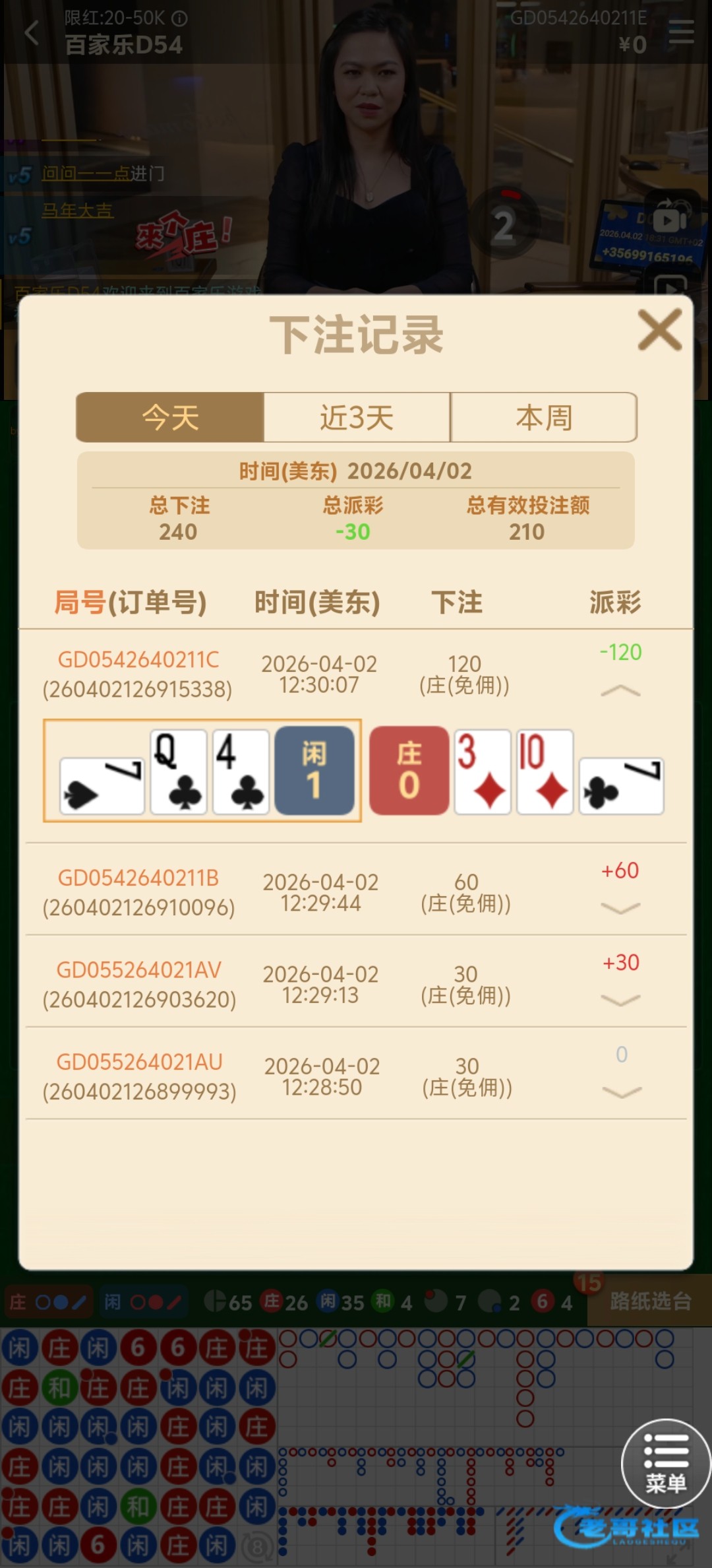我草操妈的百家乐,闲一点,庄三点,我都以为稳住了,想着三关就收了,结果庄补了张7,人懵逼了。