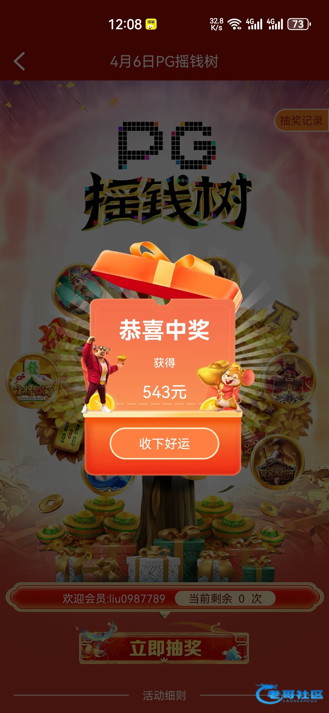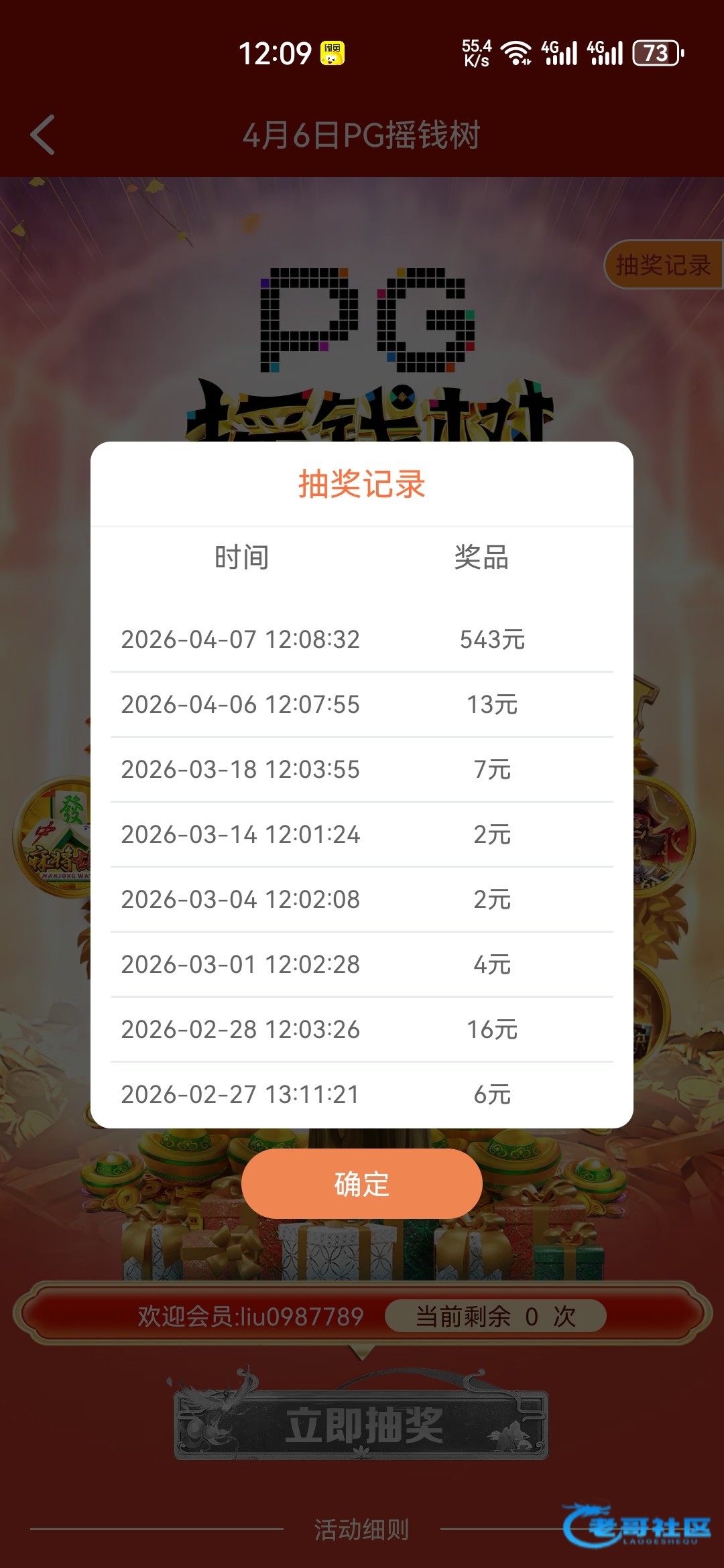 哎呀,没这个命,我也刚摇的,6块