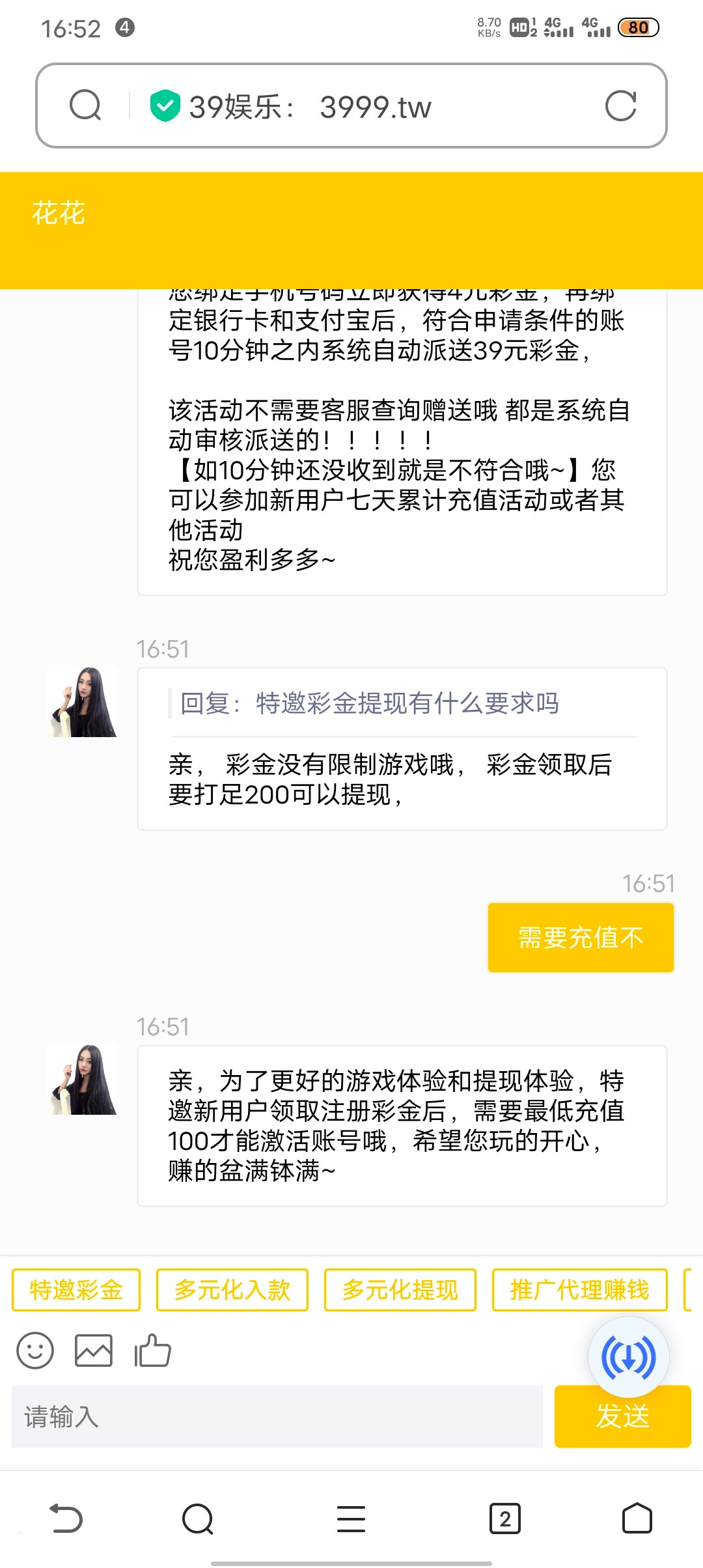 我收到了微信加我,注册完客服说自动送,到现在还没看到彩金