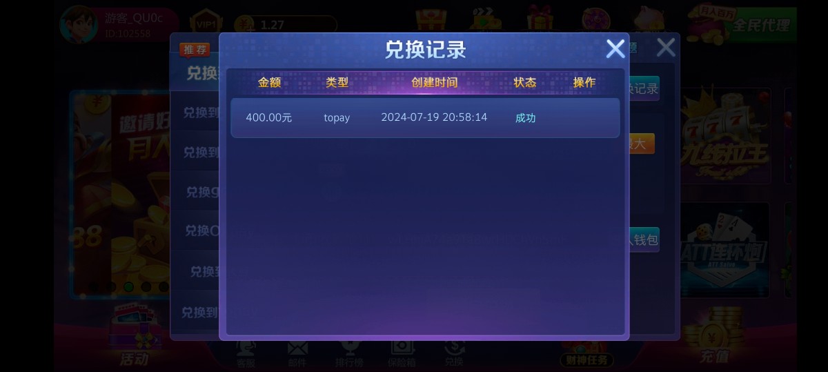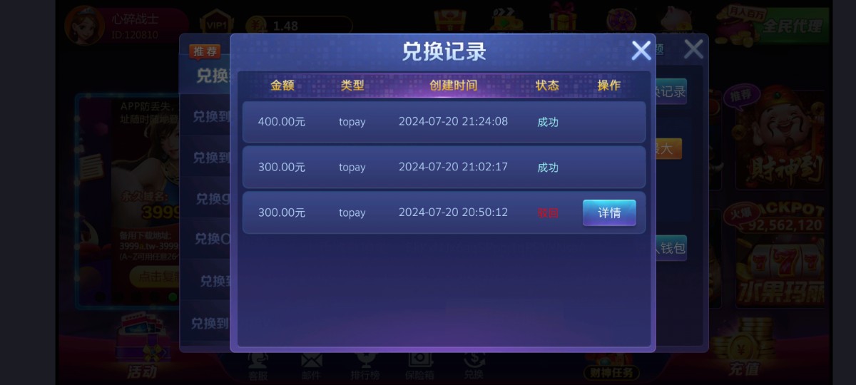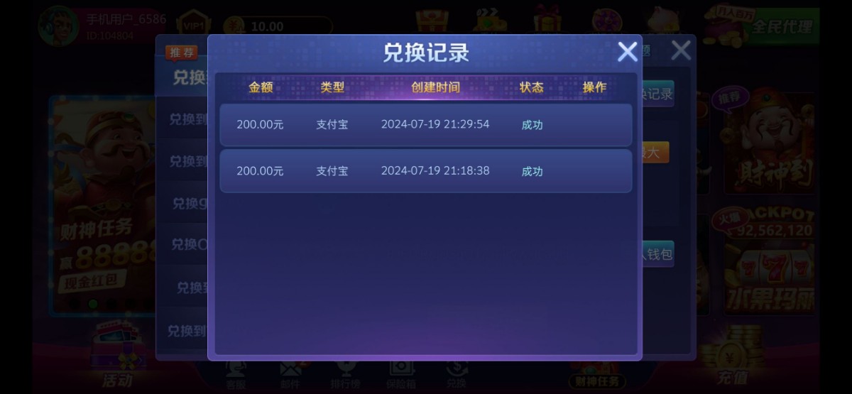 打到200,充值100,成功出款300