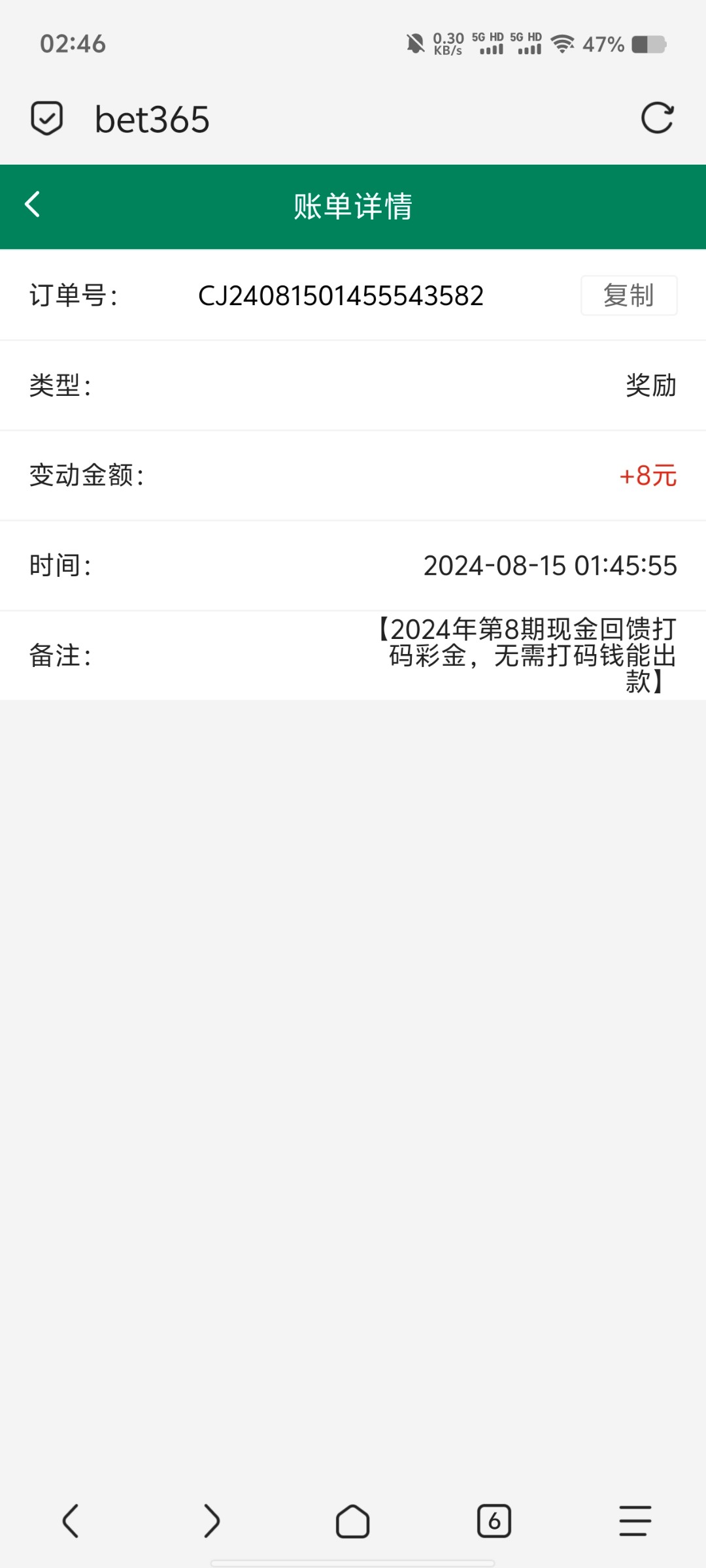 【BET 1036】—✅—现金回馈