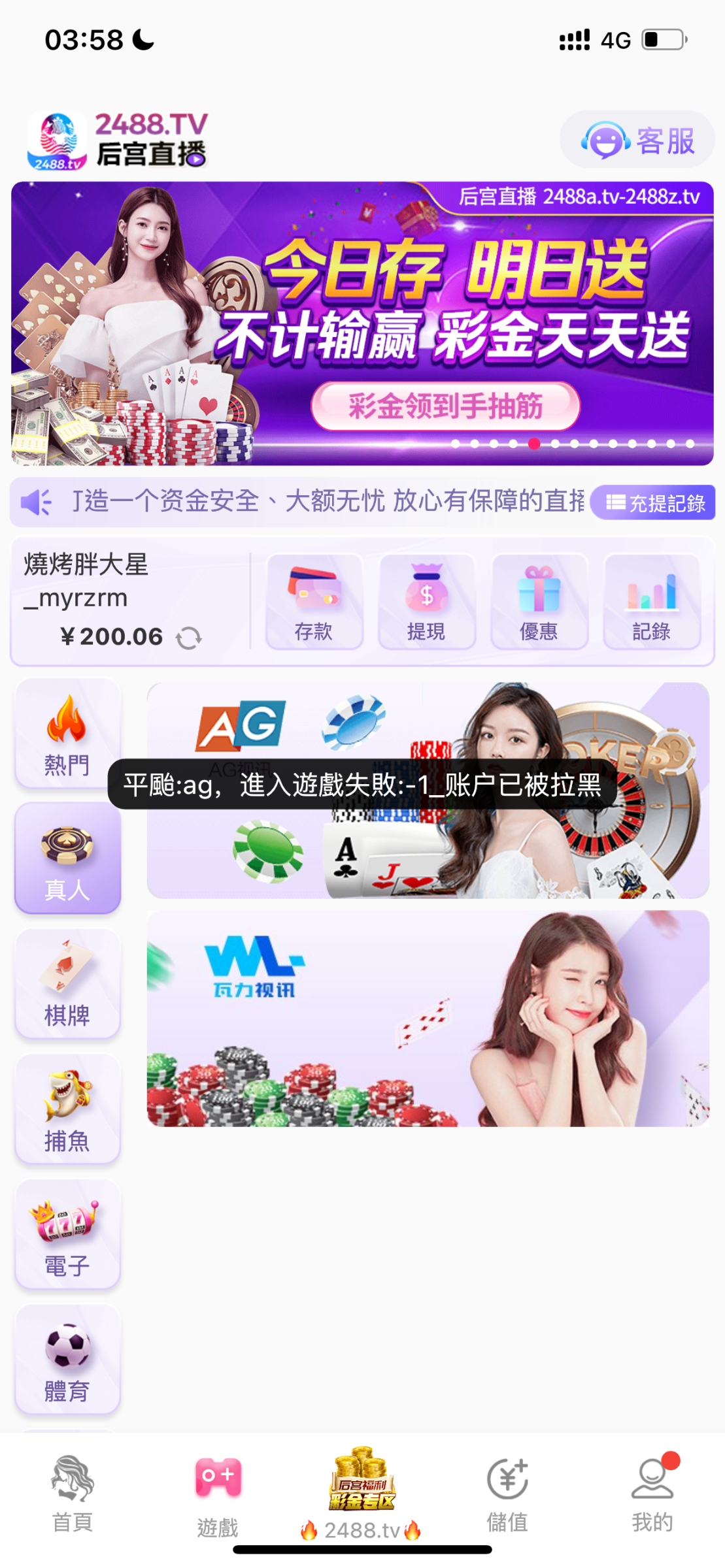 后宫直播黑平台充值50提现200冻结