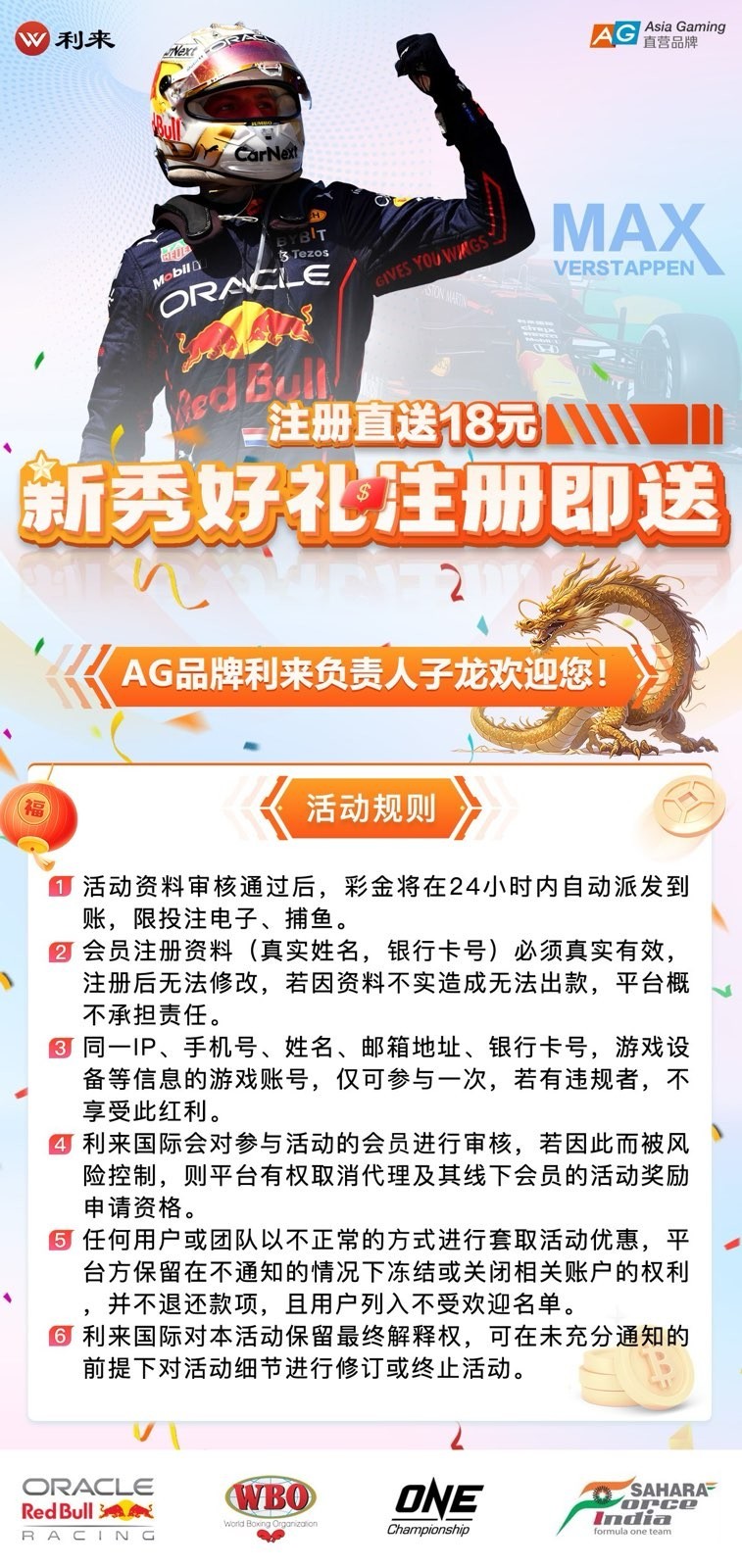 【AG直营利来国际】无限送18-已结束