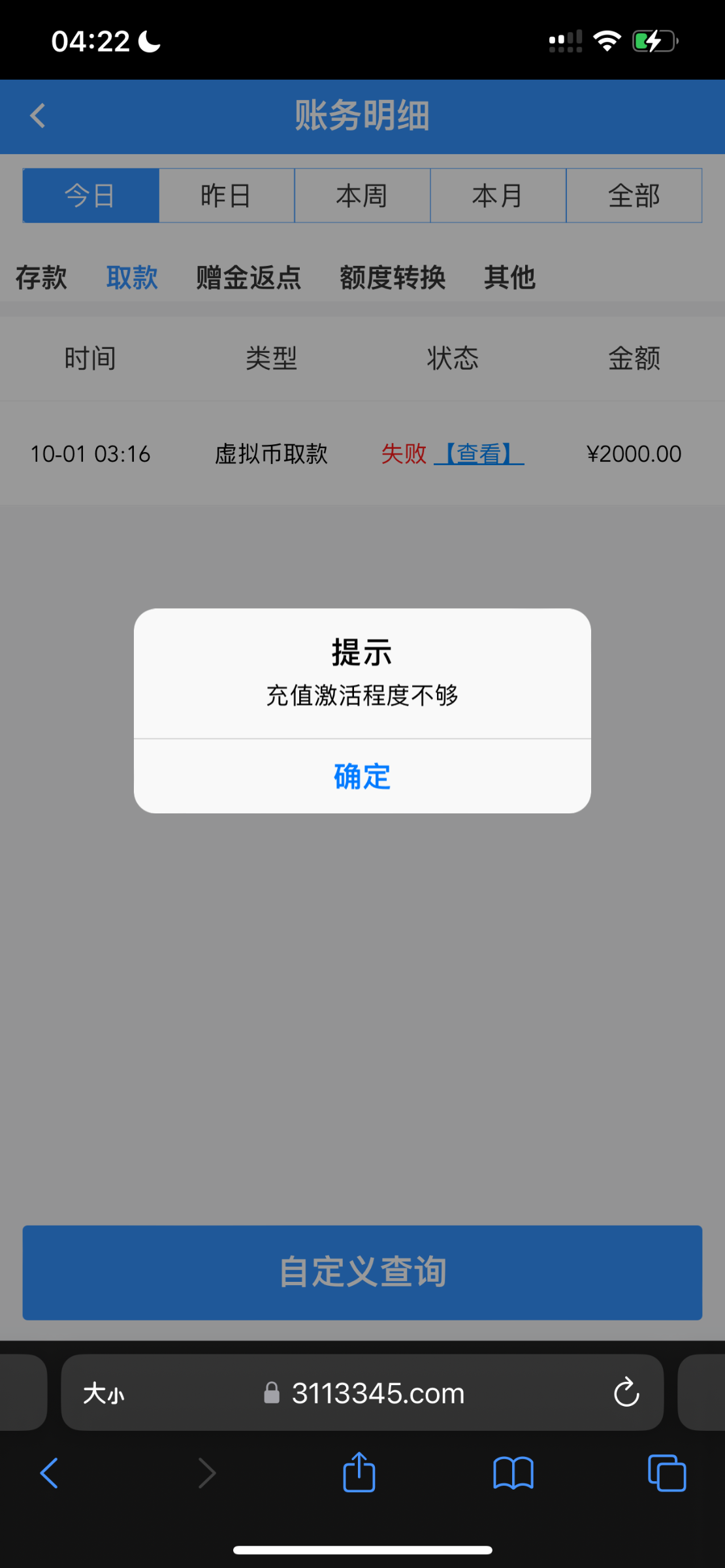 充值过大额还能出,小额估计直接黑,我一个朋友小蓝板几千几千充值,最高一次2w都能出