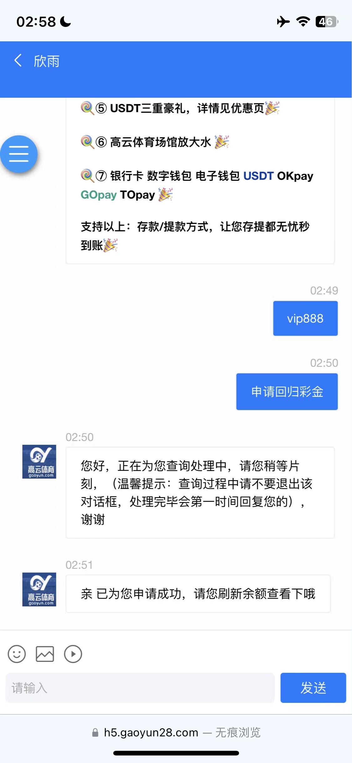 深夜睡不着然后到处看看之前玩过的台挨个联系他们事情回归彩金 没想到碰到了66 之前有号的都可以试一下 地址 gaoyun.com