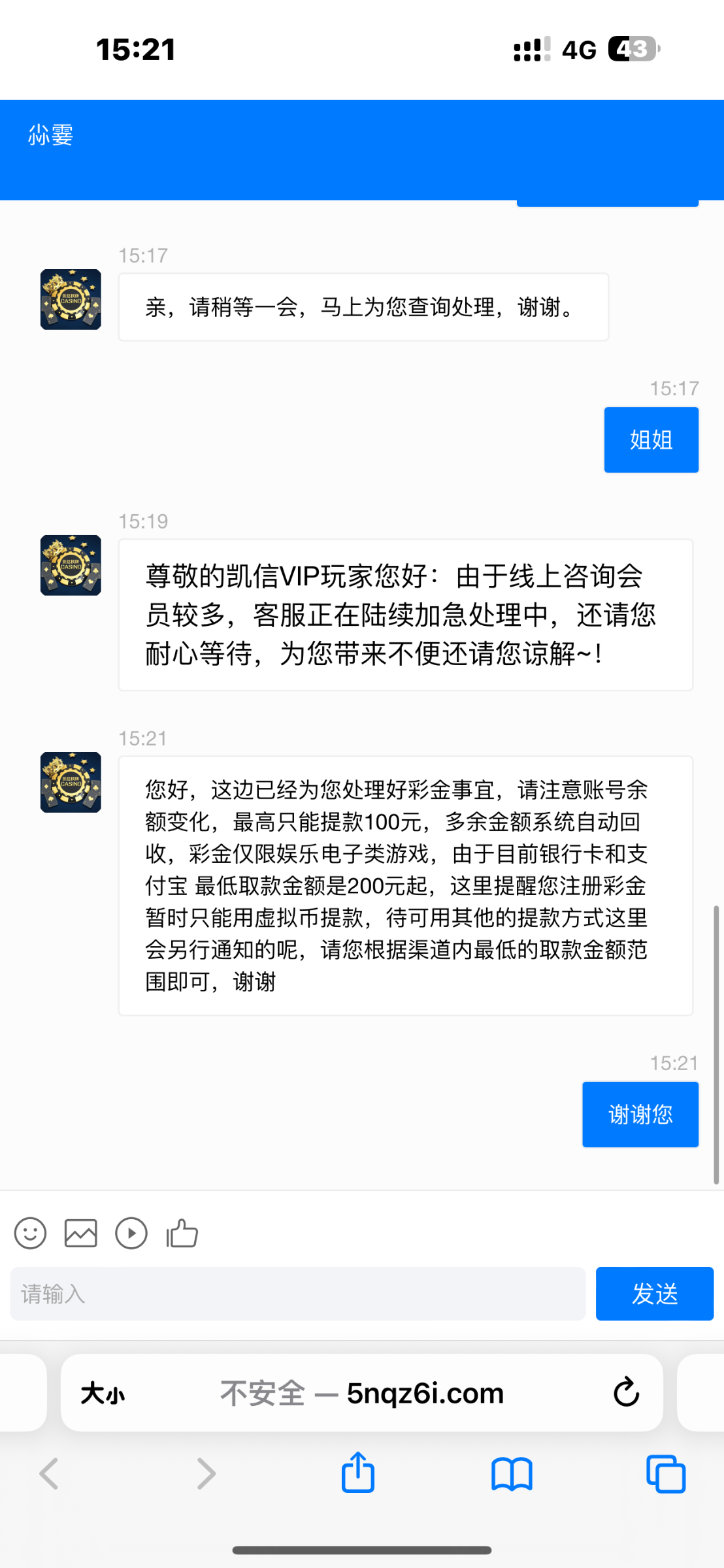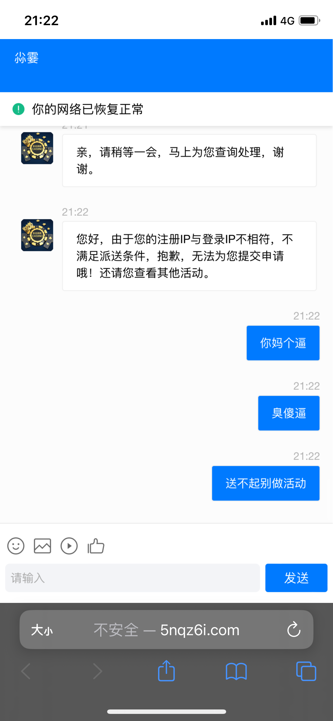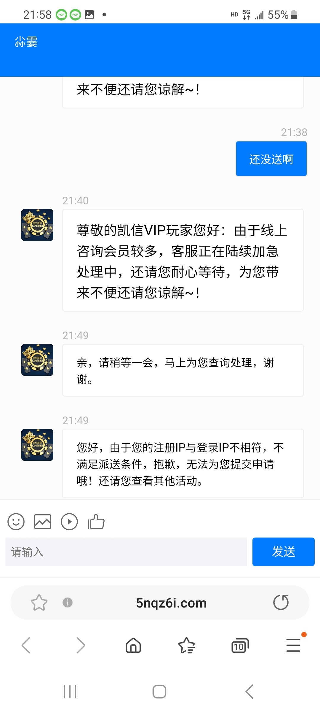 送个几把 等了半天客服,莫名其妙就说老子注册ip和登录ip不一致不送