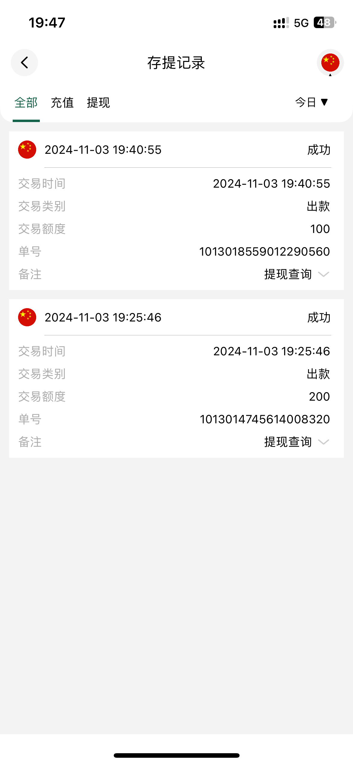 美妞 ▶ 孤狼 不会到了,我的提100都三天了还是审核中,那个狗代都把我踢群了 2024-11-15