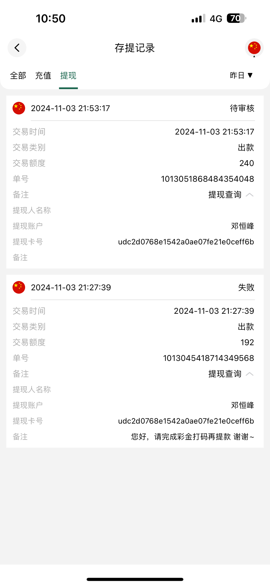 没用的,昨天提100现在还没到,说什么审核,黑台骗充值