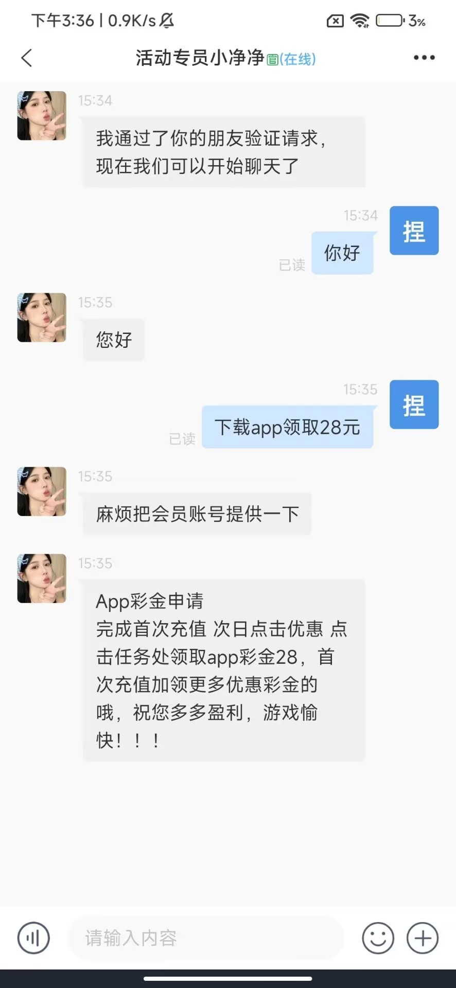16:33App彩金申请完成首次充值 次日点击优惠 点击任务处领取app彩金28,首次充值加领更多优惠彩金的哦,祝您多多盈利,游戏愉快!!!