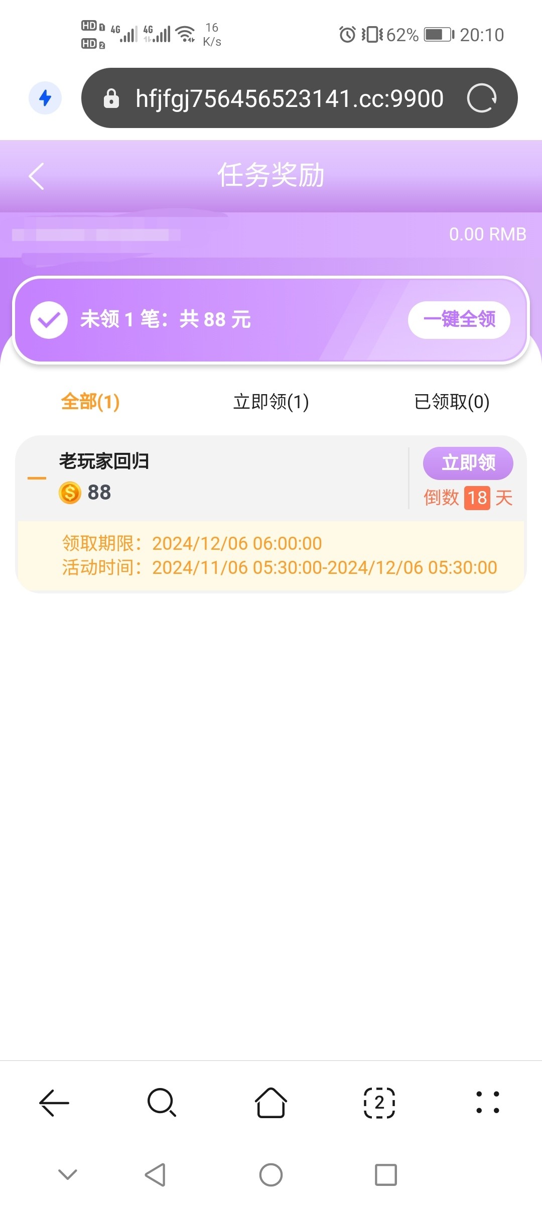 短信网址9208.cc 我登录的时候显示账号被锁定,找客服重置密码后登上了,领了88彩金。直接在首页可领优惠那里领的,我直接网页登录有点卡,不知道是不是老玩家都有还是收到短信才有,有号的去看下。