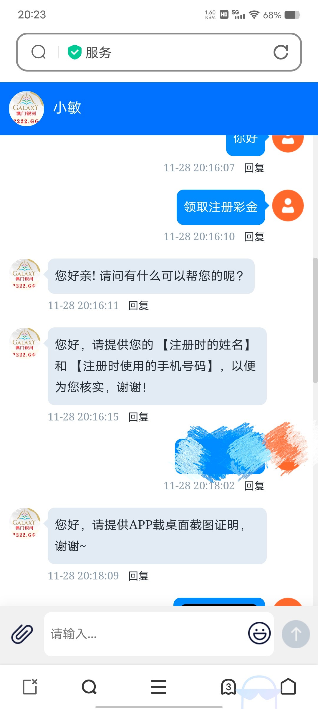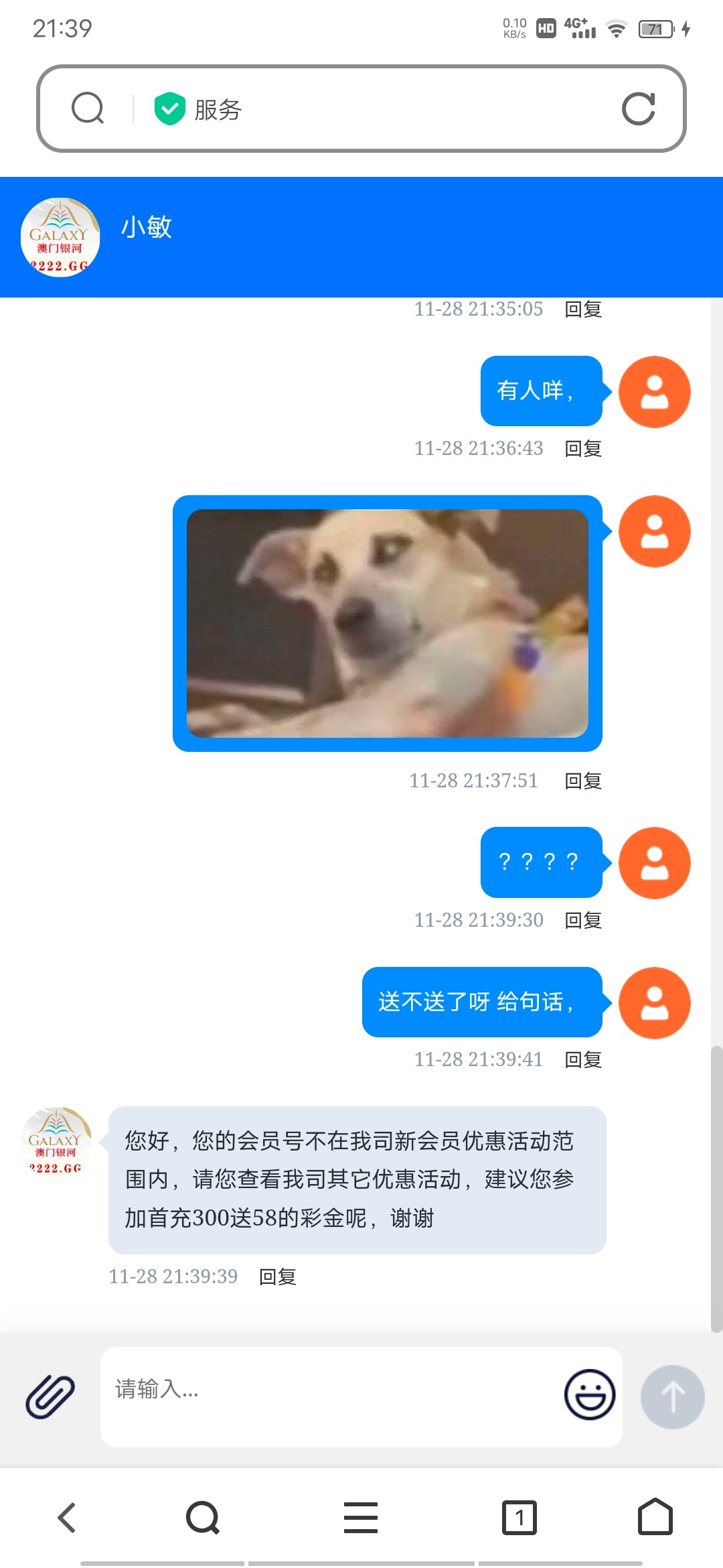 客服留言了