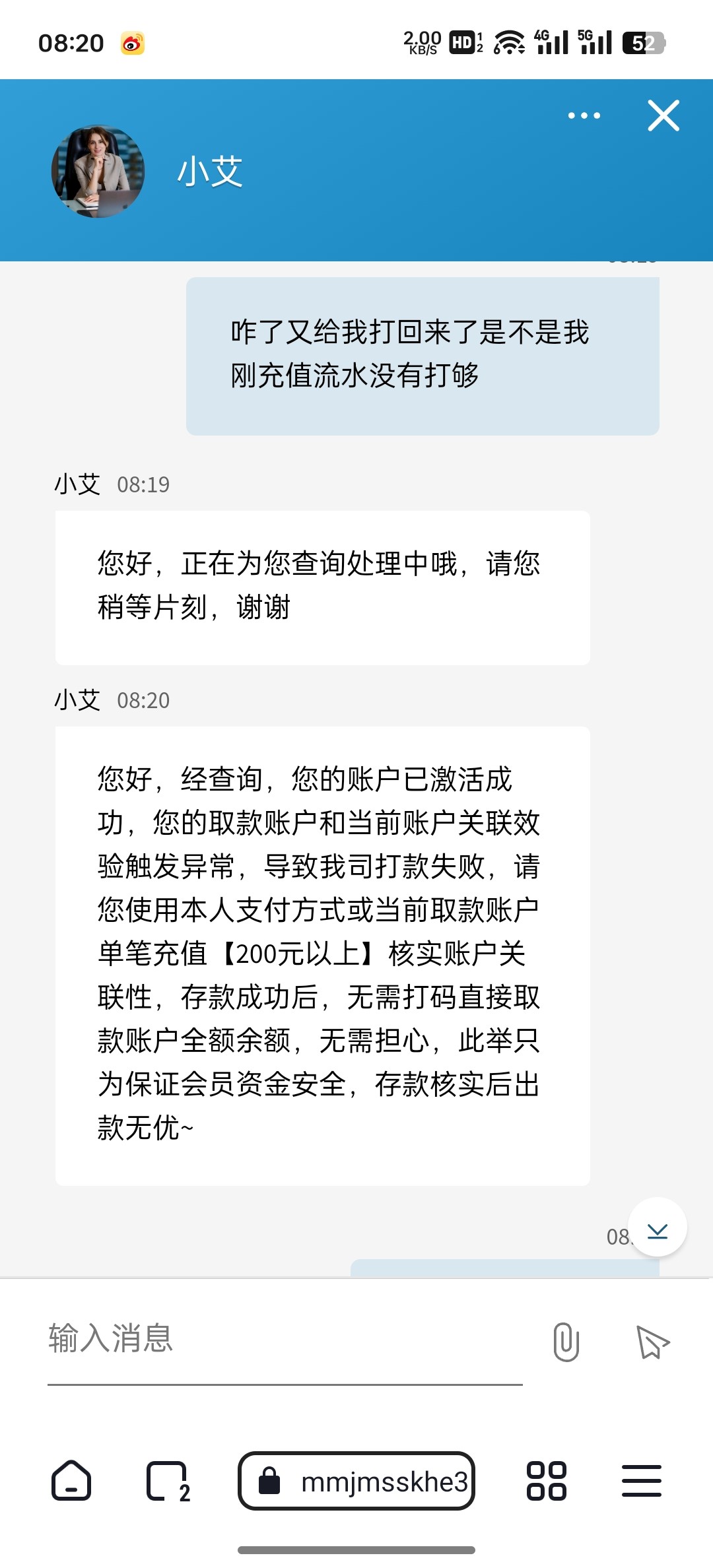 充值100后直接开黑,不讲理由直接就是200起手,我猜充值完200后应该会封号,避雷了兄弟们,这100给狗台子他母亲上坟用了