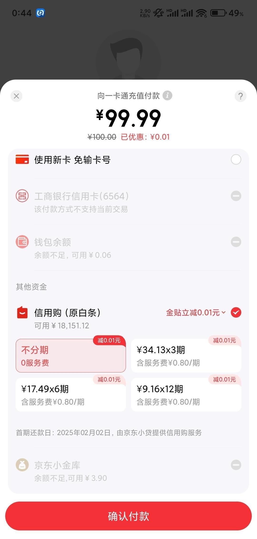无损t白条,秒到,无意间发现的,北京一卡通开卡充值,选择京东付款可以用白条支付,只能小额,不要超过200超过可能不能线上退卡,100退卡秒到