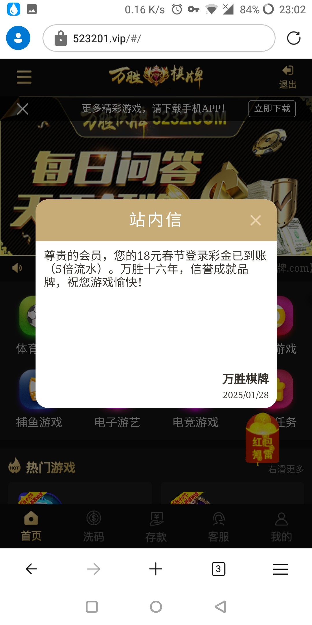 除夕红包,老会员登录领取 地址 https://523201.vip/#/