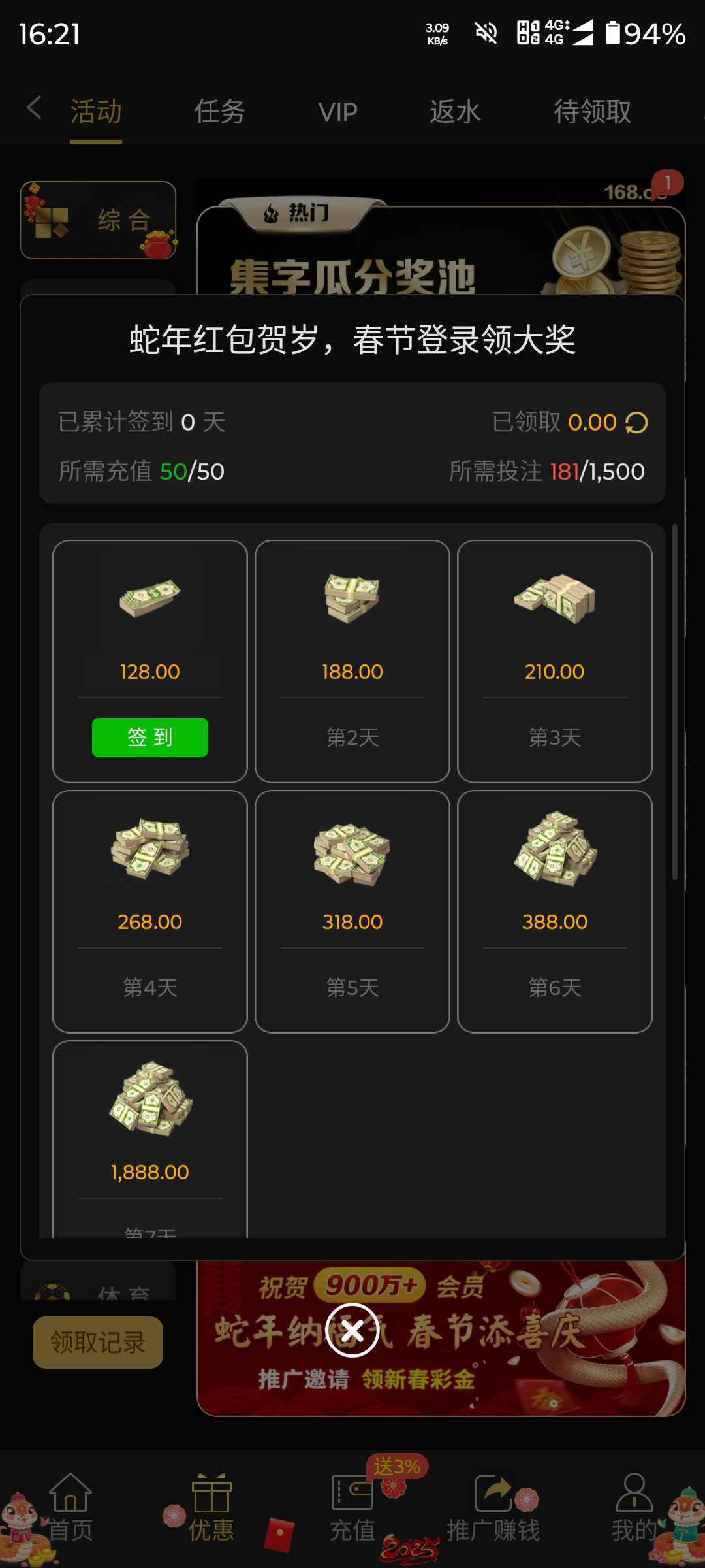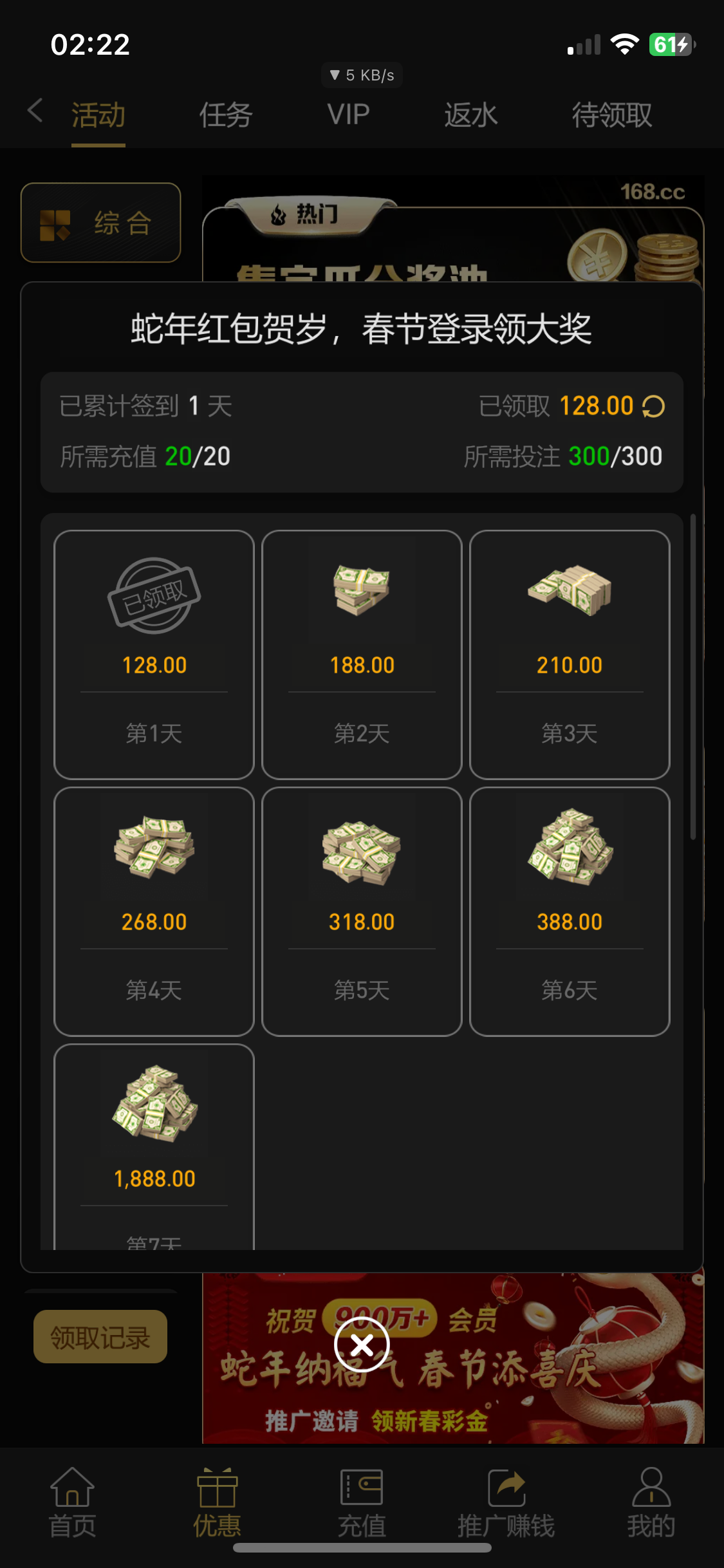 【168贵宾会】充20投注300领128-(已黄)