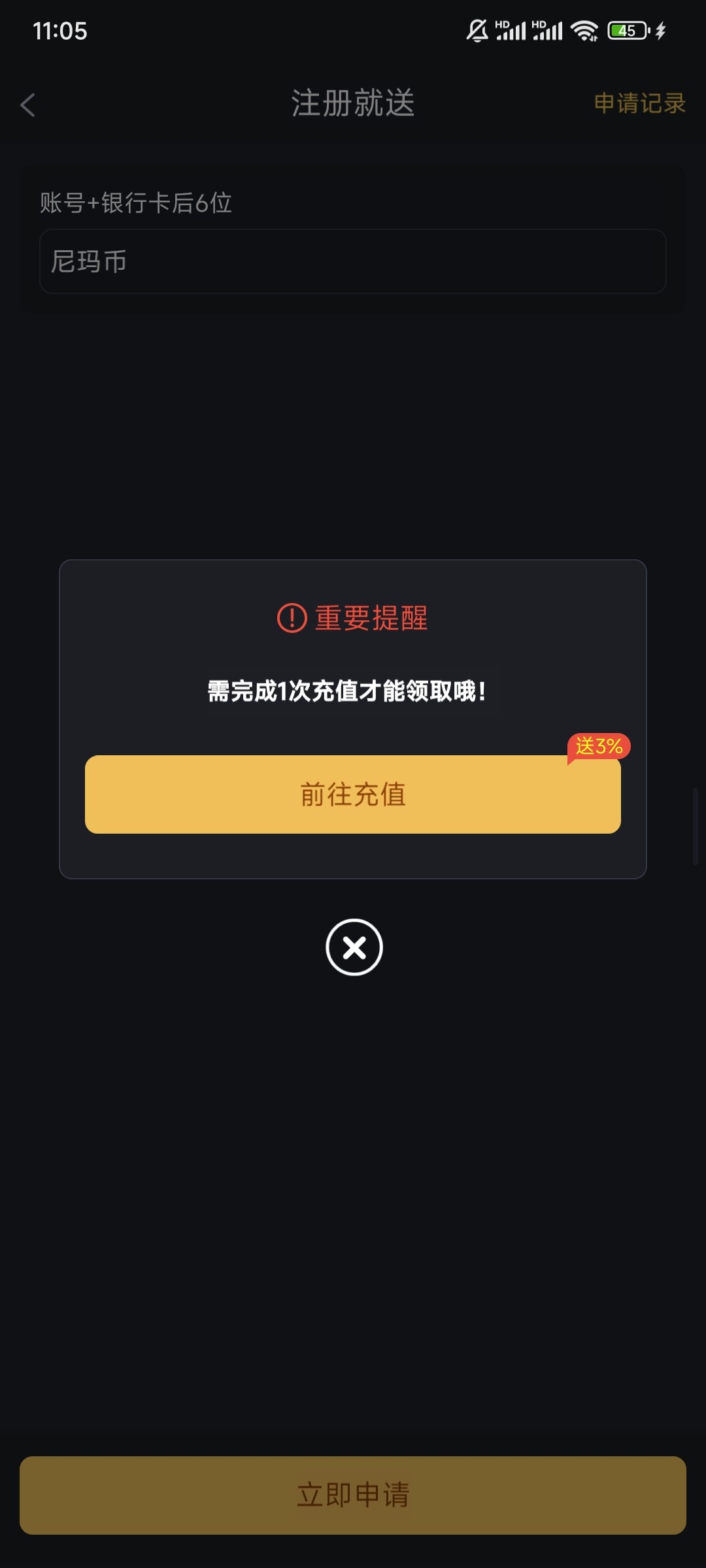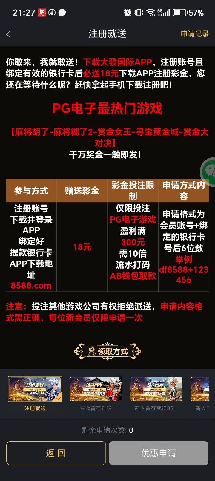 黄了 申请18改成充值送了