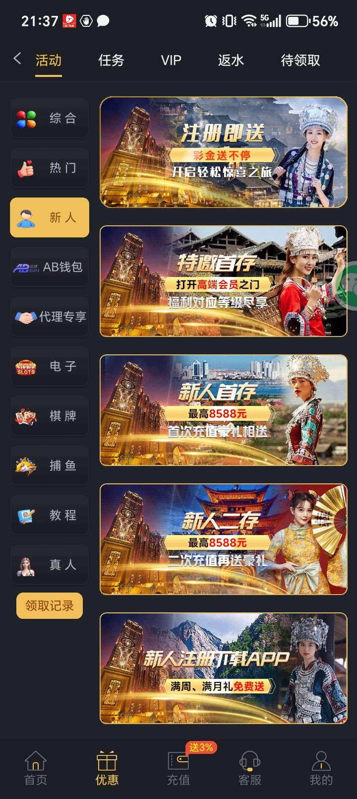 在这个注册即送里面
