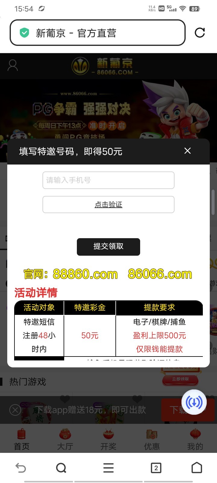 新普京86066短信特邀送50 收到短信的可以去看看 地址  86066.COM