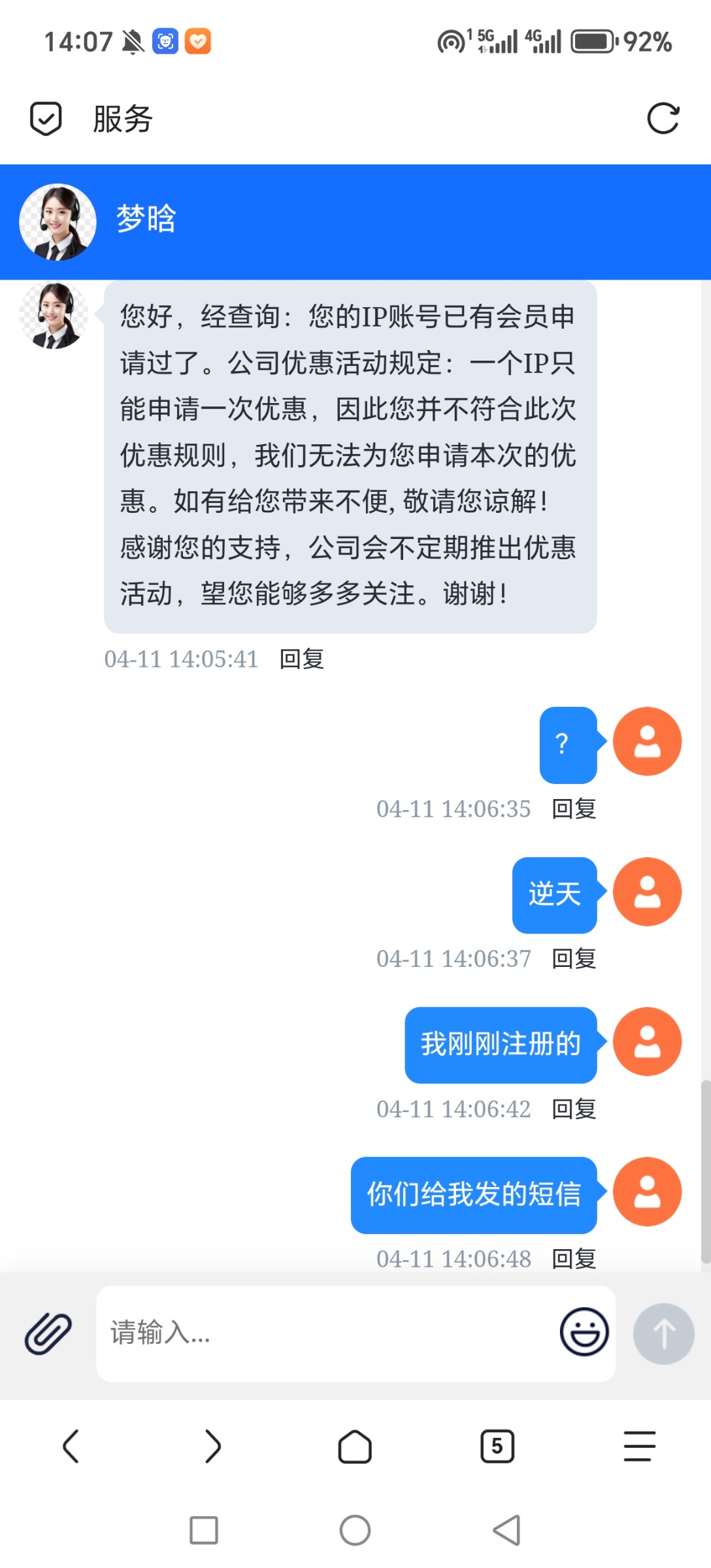 这个给我发了好多条短信!今天去客服说不符合哈哈哈