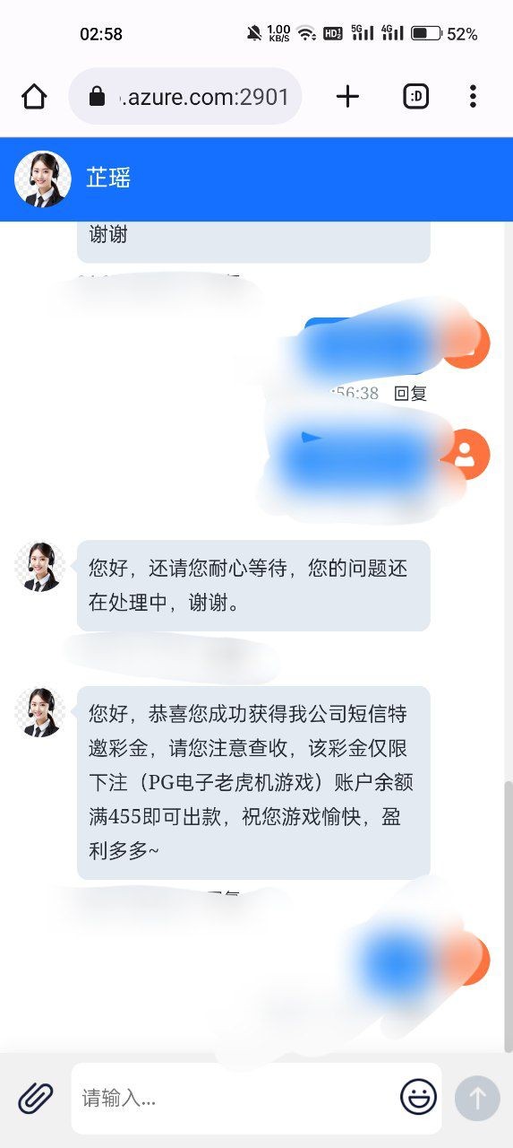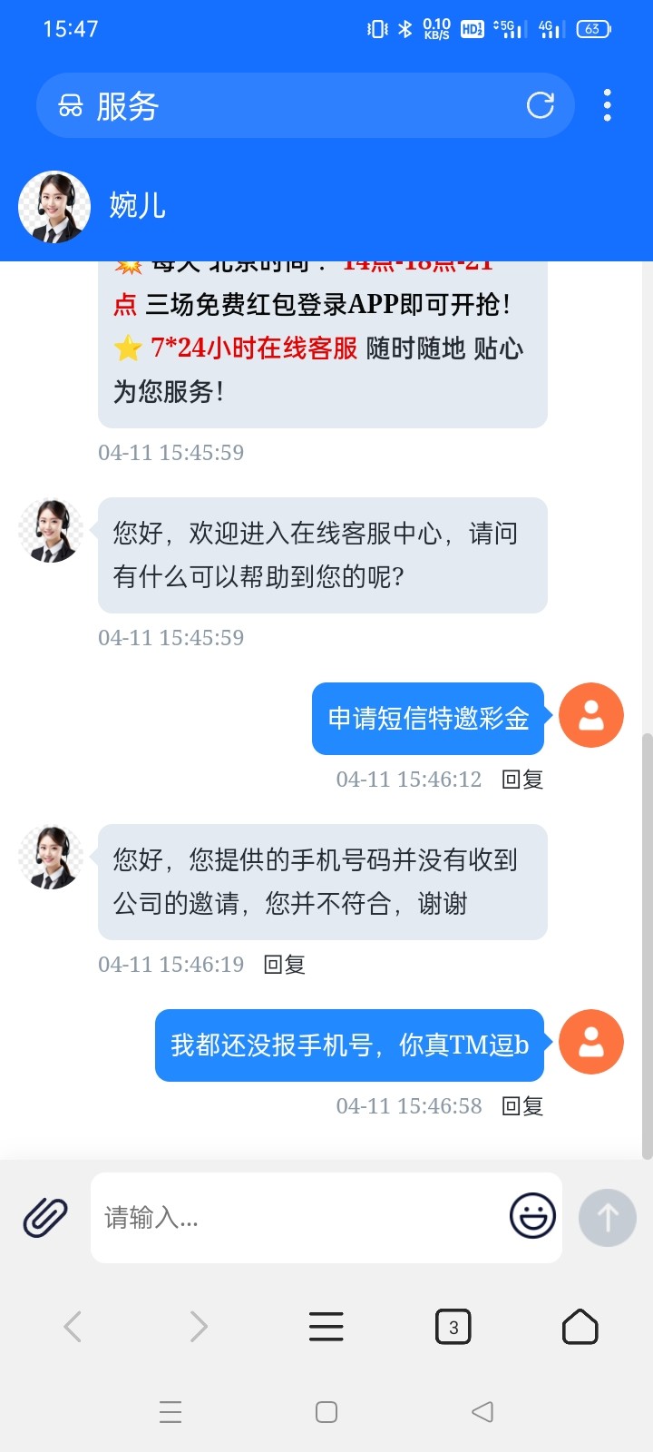 好假我上一个月收到短信去客服那里申请让我发图发完之后让充值