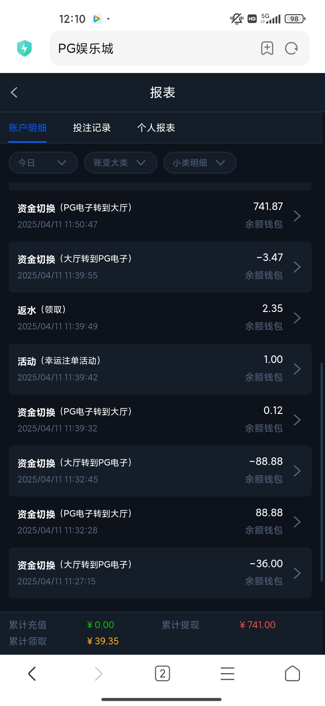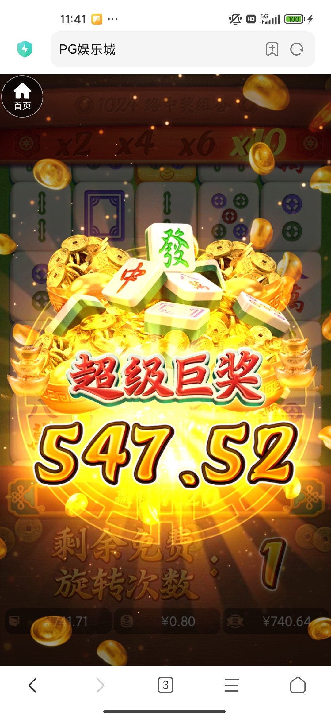 领到了没打出来,免费都没进,打到100多块钱