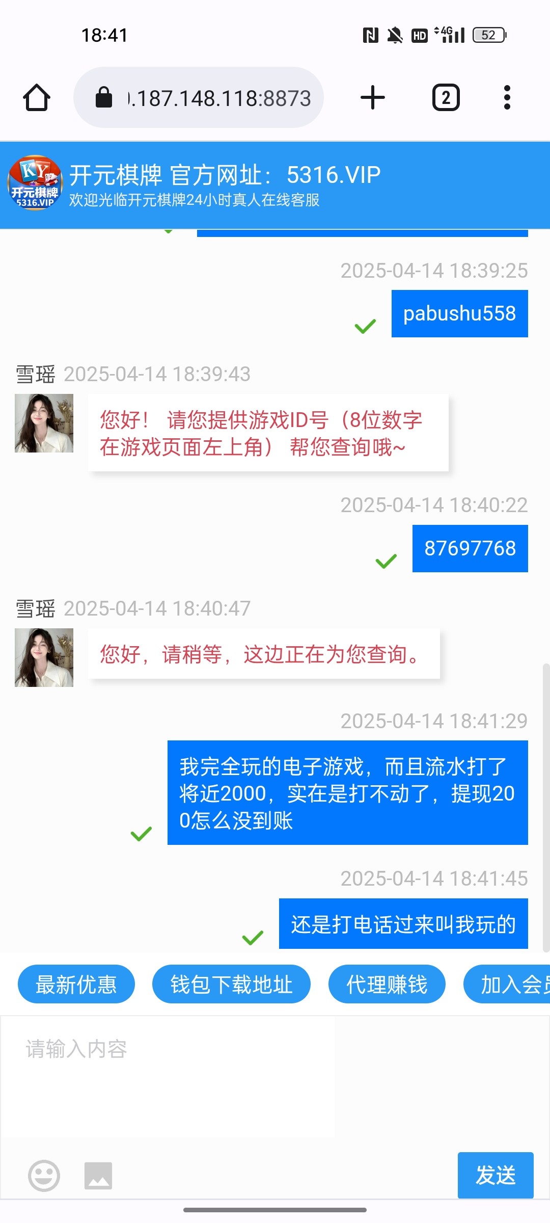 打电话说充100送38,结果送了我28,提现200被黑
