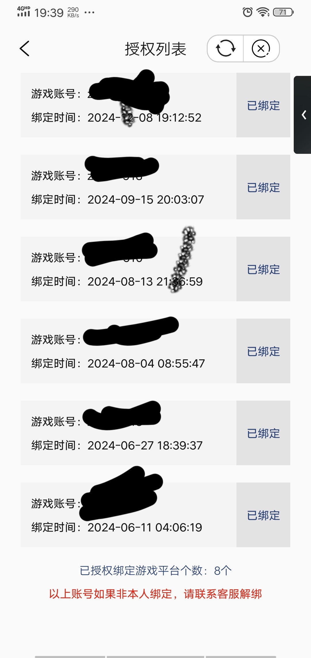 今天看到444普京盗刷钱能币,还好上次我绑定领了彩金,提现不给提我就去取消绑定了,他妈的还有8个授权,点进去提示不支持解绑,那个444黑台就可以解绑,后面就去找客服让给我把那8个解绑,客服说不行让我去找游戏平台客服解,客服又让我找钱能,几个台都这样踢皮球,我操了,怎么才能解绑啊,这8个都是精彩系列的台子。有没有解绑过钱能台的老哥,教一下