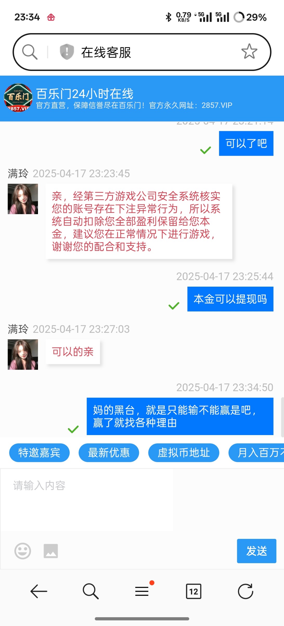 你如果不提现本,你这样骂客服百分百黑你本,哈哈