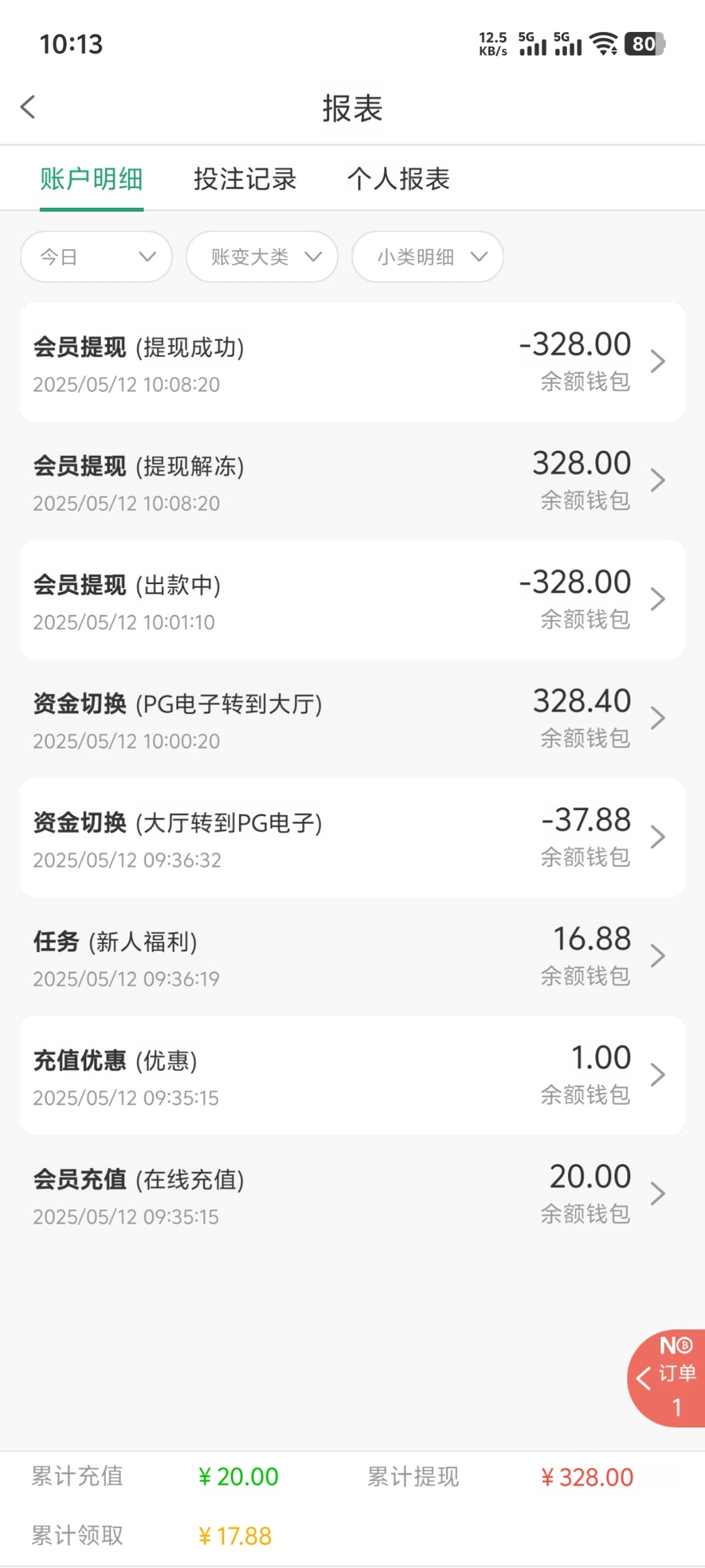 充了20一点水没有我又提回来了,中出你