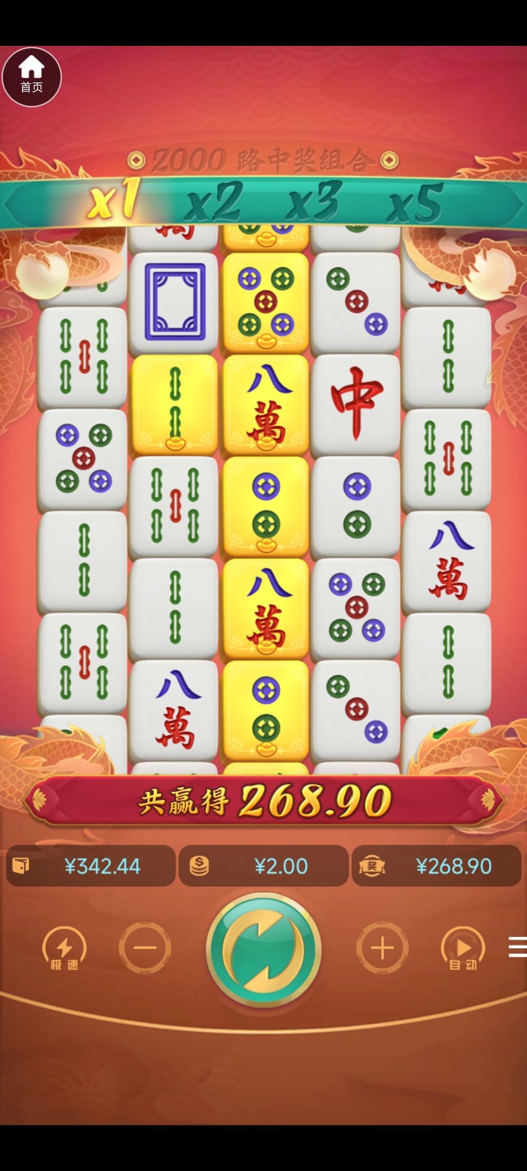 麻二打到500去麻一一直胡都是三十十倍。胡了十几次,最高1100剩一千。能到吗