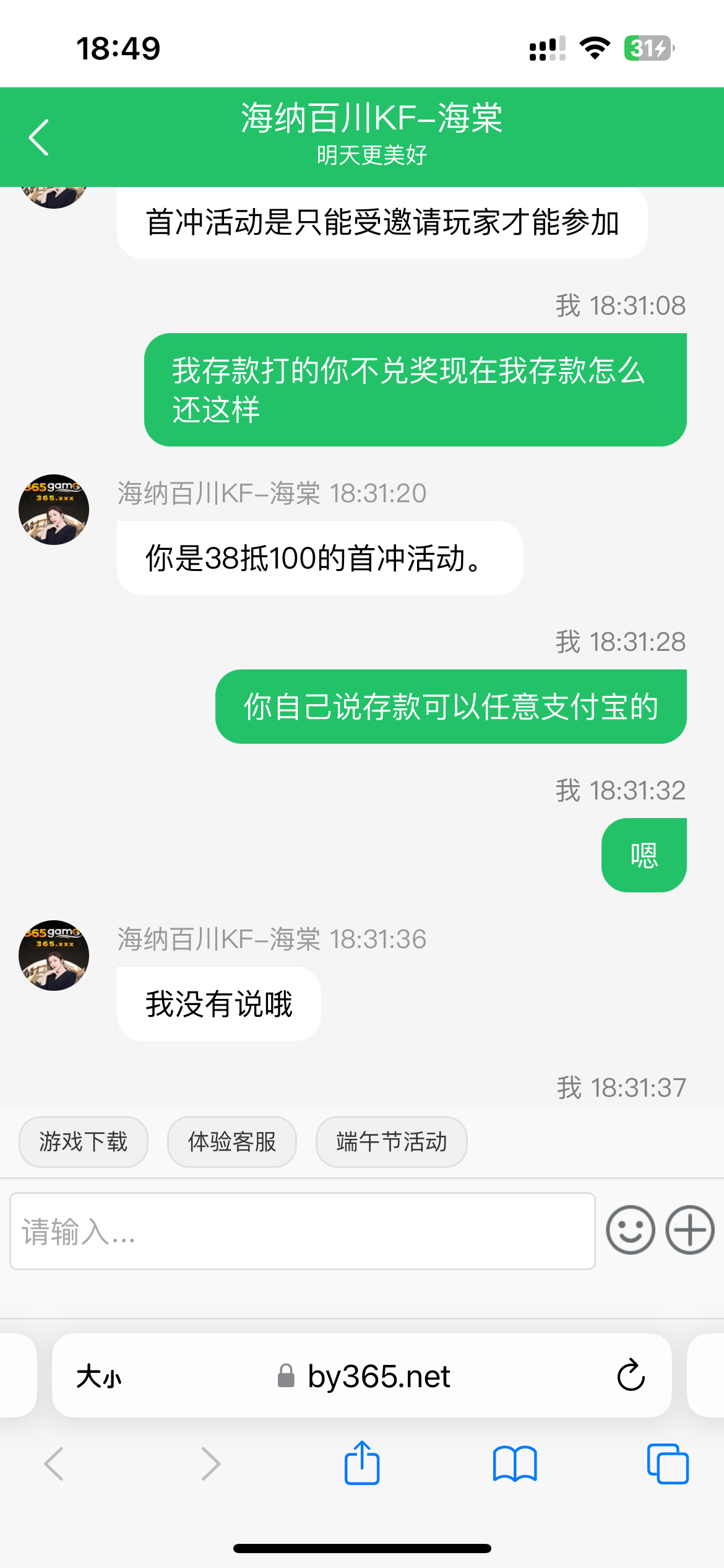 送的体验金本来兑奖38,说不是体验号码不能兑奖要存一百、存款一百然后这个38可以抵扣100加增50%就是300,打出来三倍去下款900。结果又说还是只能原来体验手机号下款,主打一个只能输不能赢,我体验的支付宝能下我还存个几把一百,900都不给兑奖