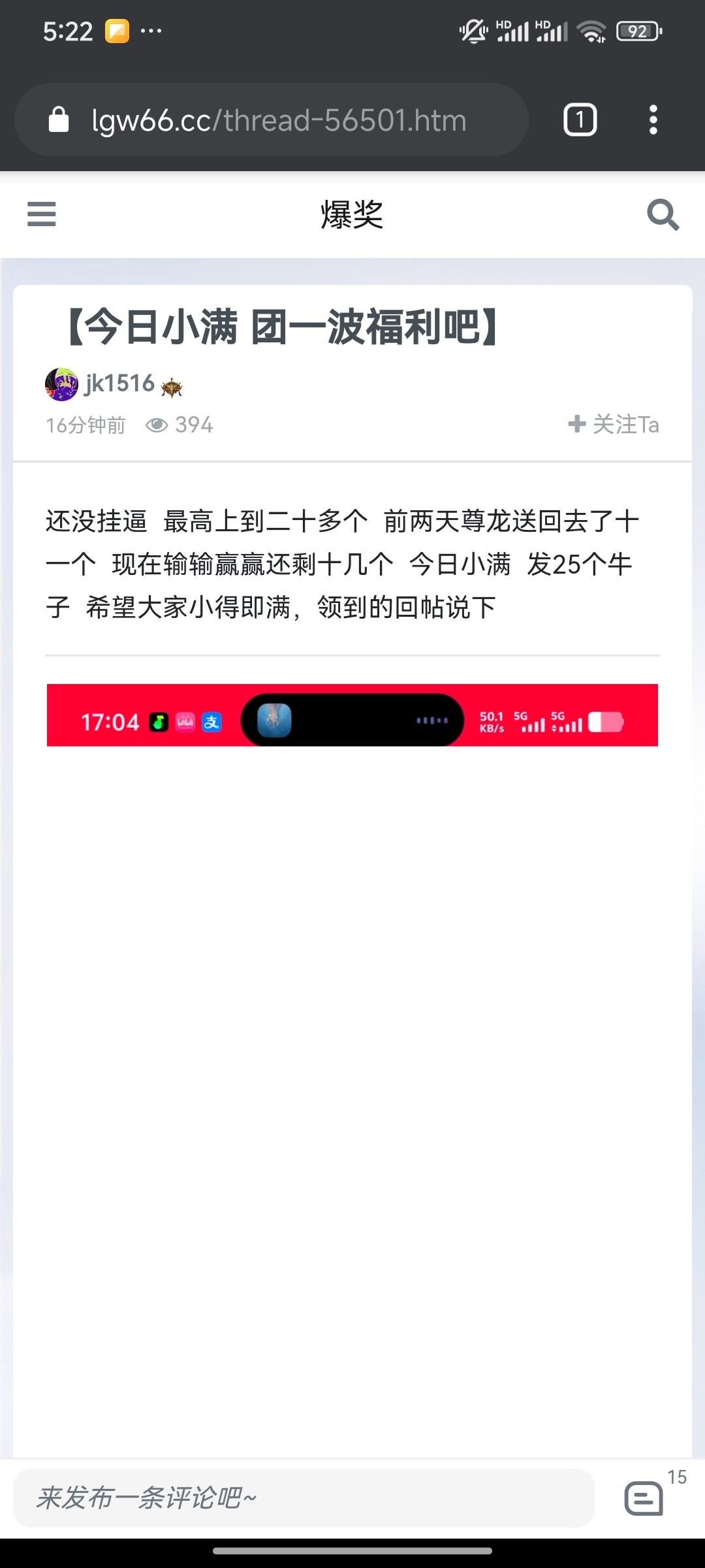 还没挂逼 最高上到二十多个 前两天尊龙送回去了十一个 现在输输赢赢还剩十几个 今日小满 发25个牛子 希望大家小得即满,领到的回帖说下