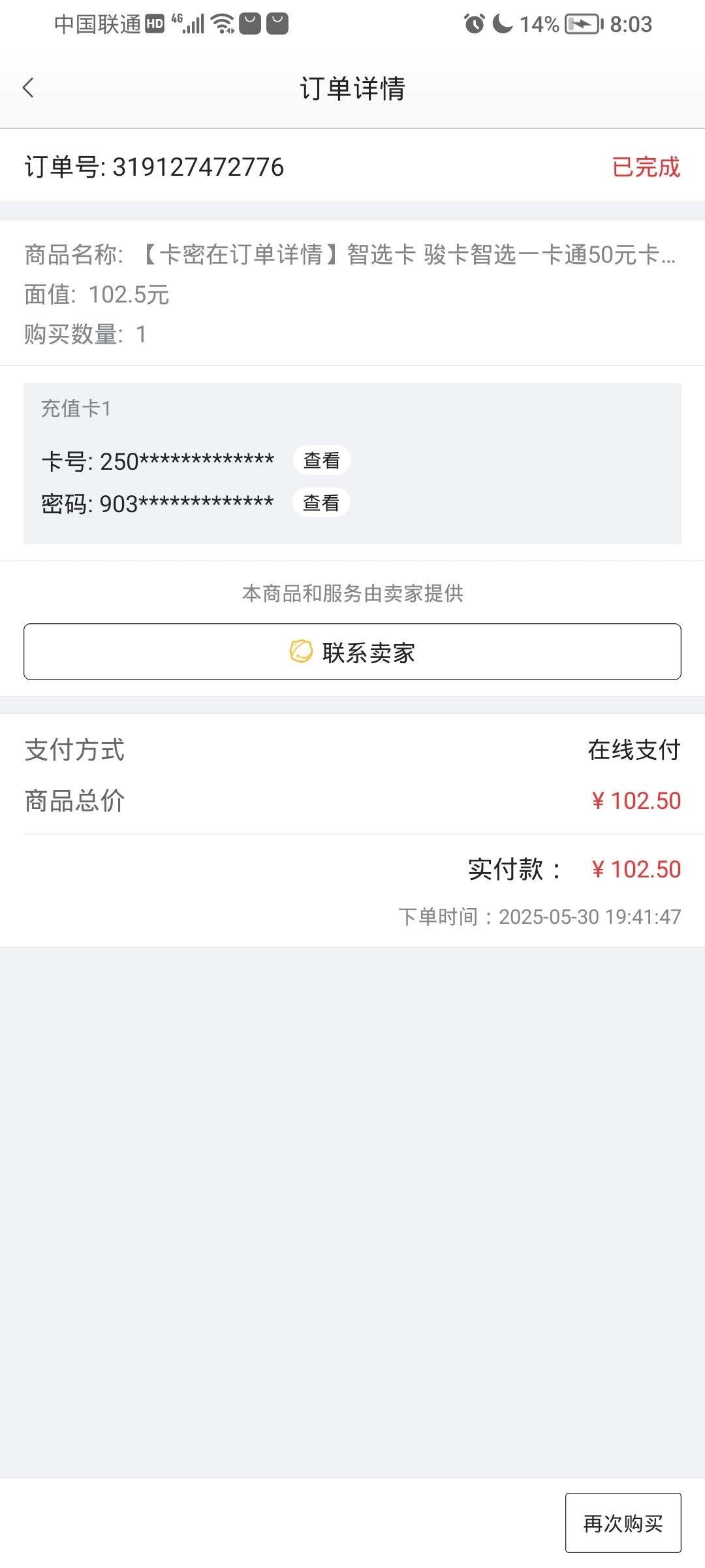 才买的智选一卡通,43分交单,43分19秒核销。不给我上分