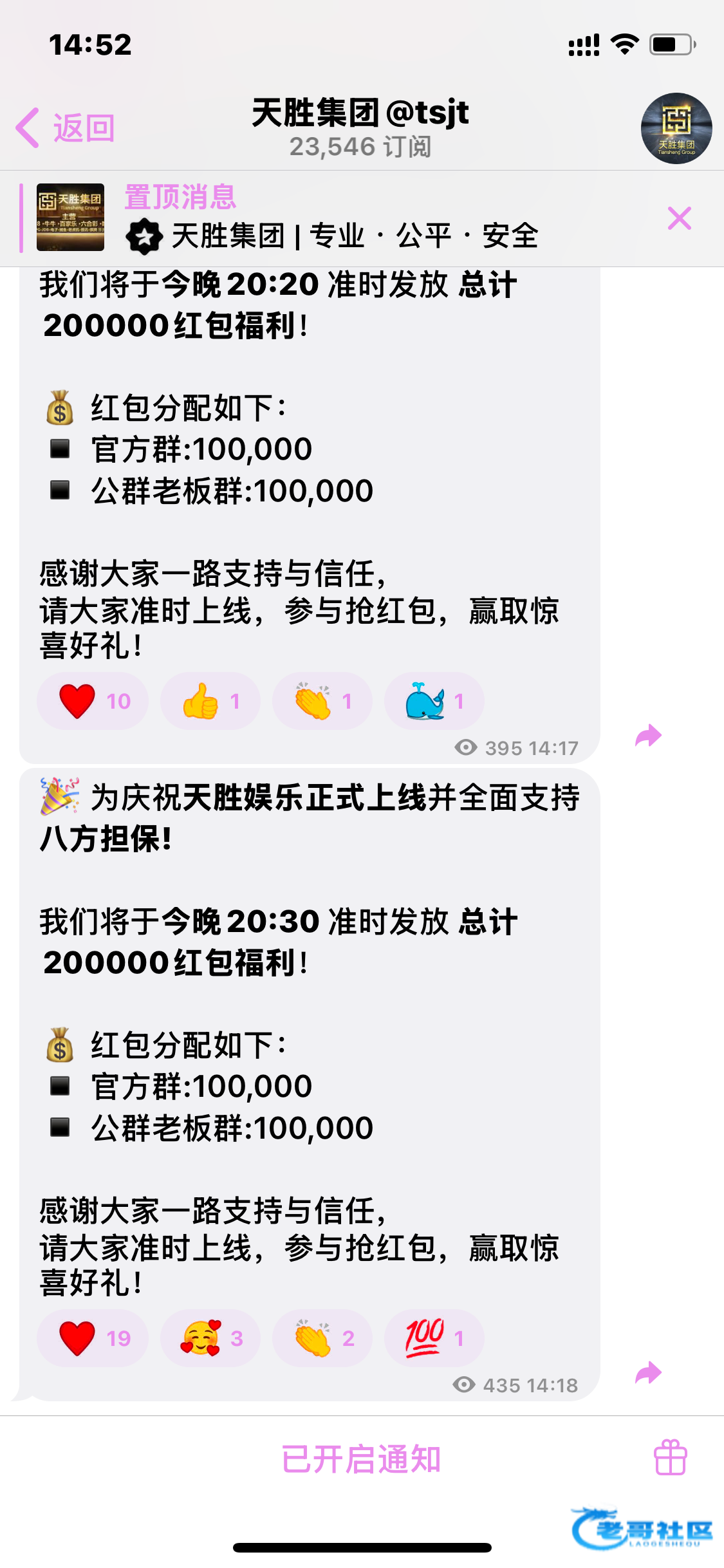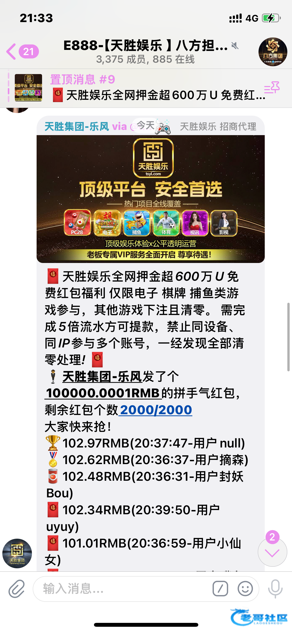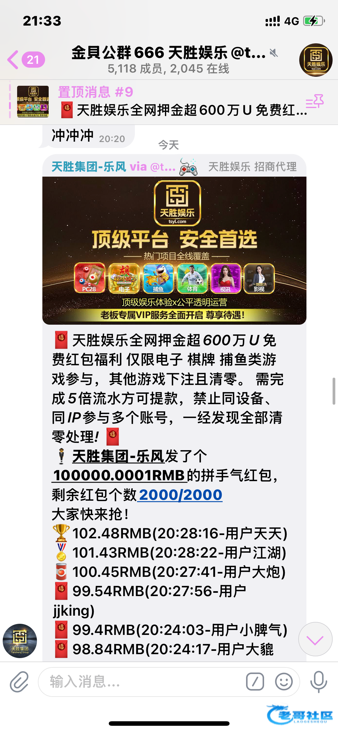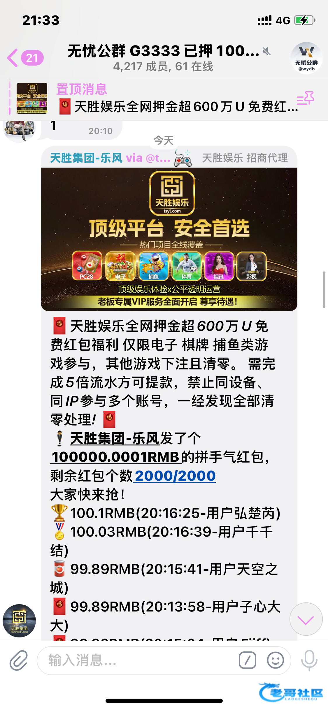 频道置顶的公群啊,三个公群都发了,字都不会看的还想抢红包吗