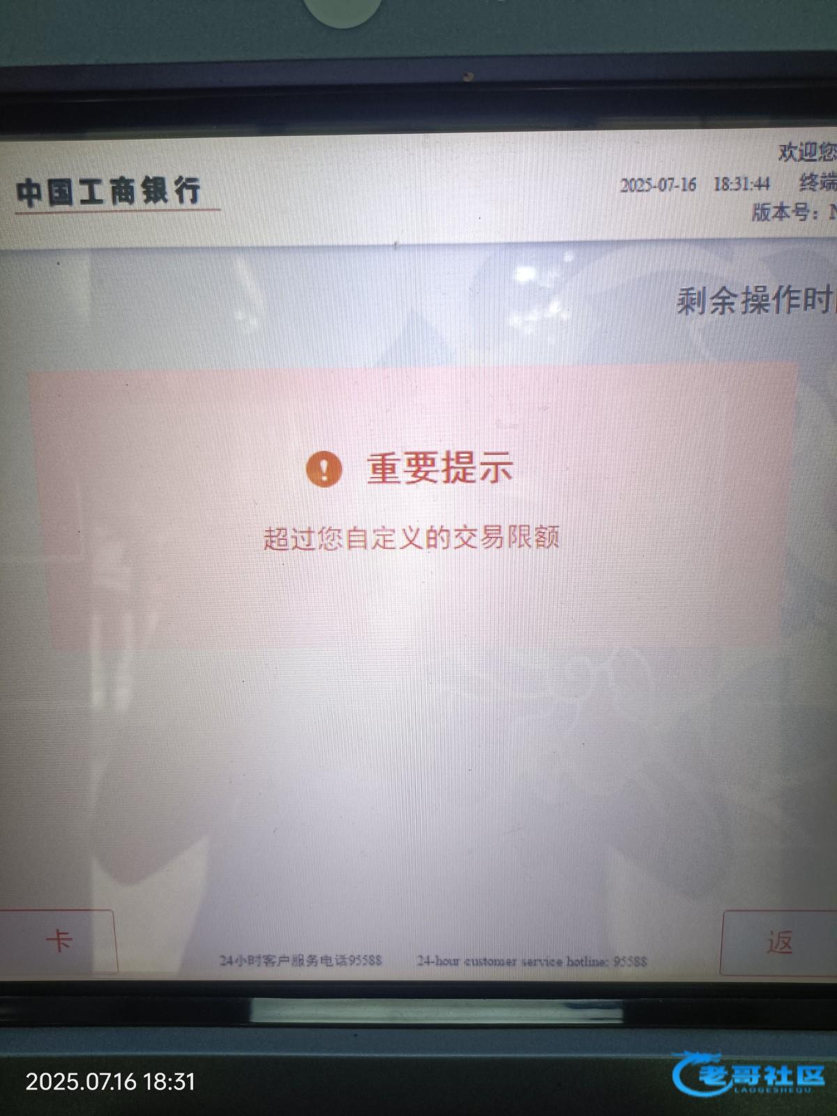 这种用大厅的机器或者柜台,atm取不出来,我的就是交易限制次数0