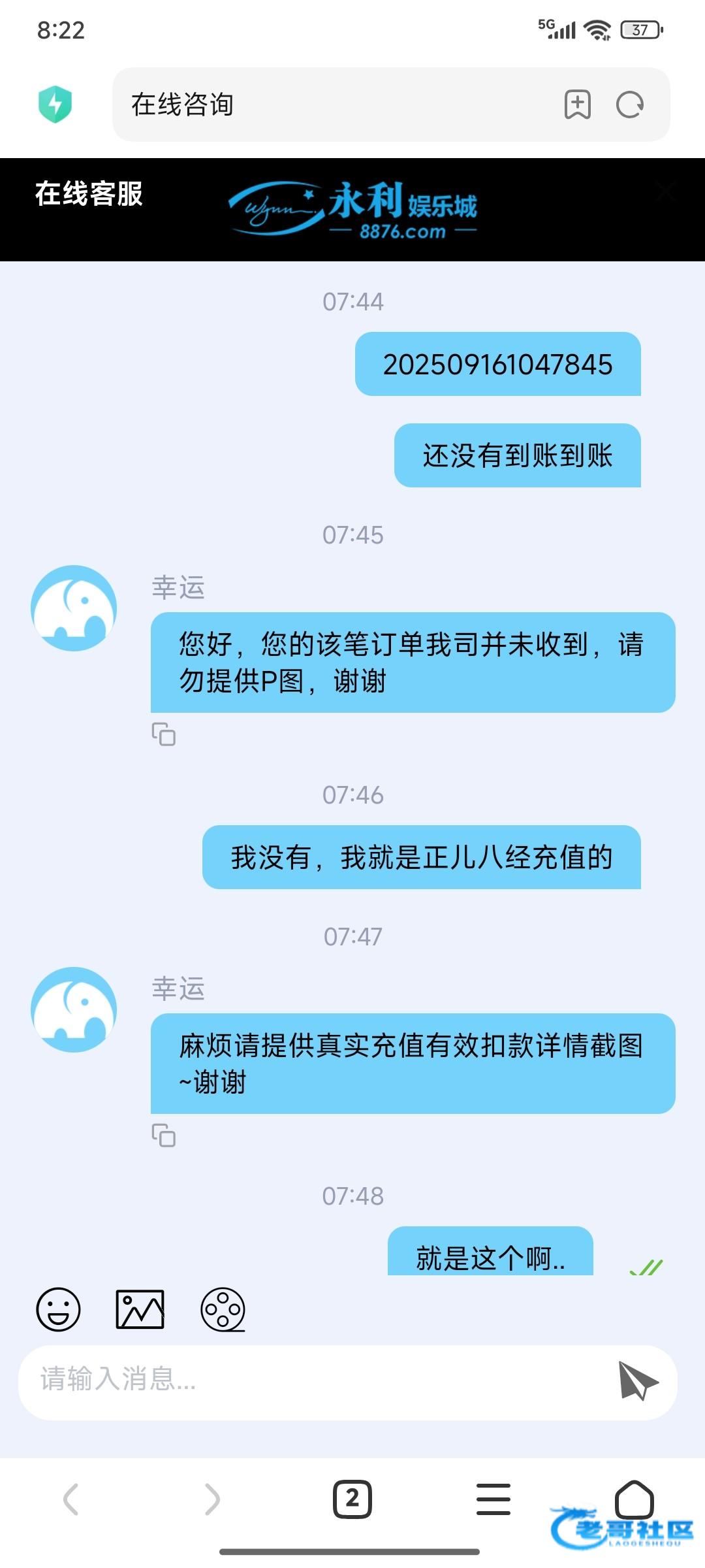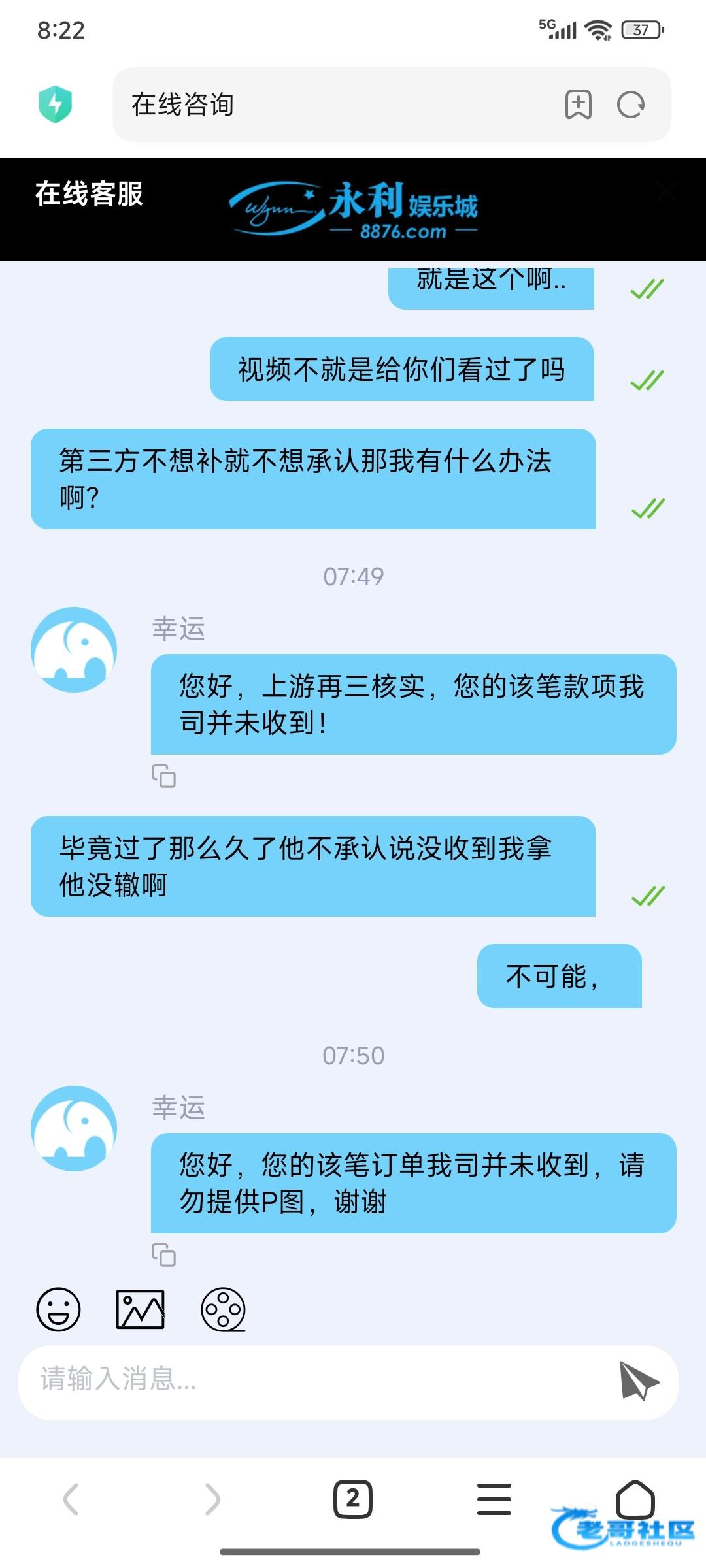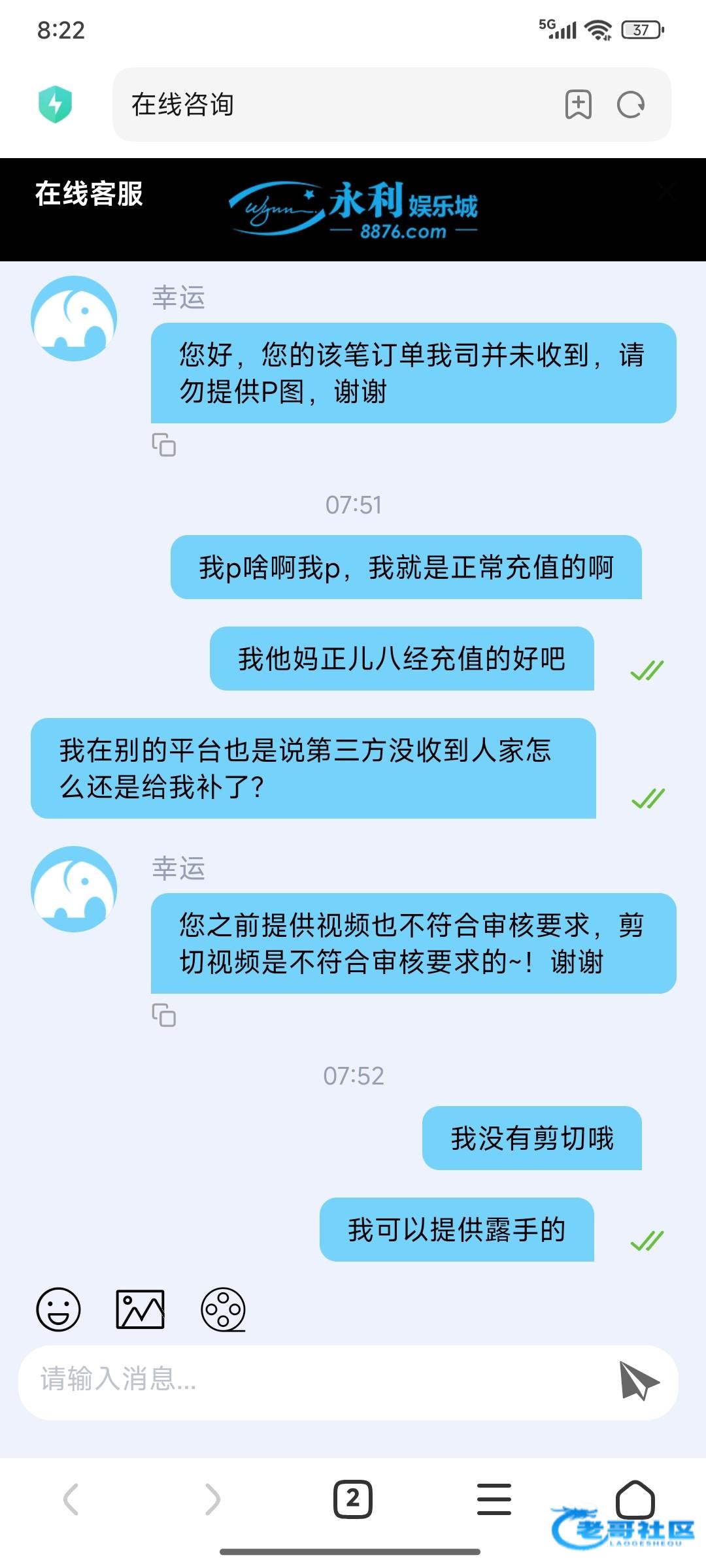 大黑台,充值一百话费没到账,第一天就准时联系了没处理,然后下午喊录视,提供了说说剪辑,然后我说露手,然后说不符合,最后说没收到这种垃圾平台谁玩谁傻逼曝光一下这个,平台