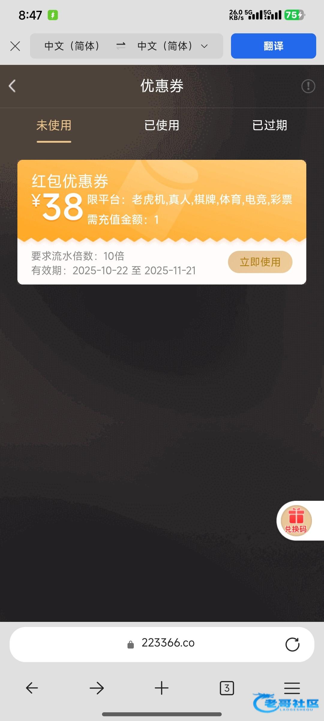 网站 223366.co 接到电话上号就有优惠券,老号自己登陆看看