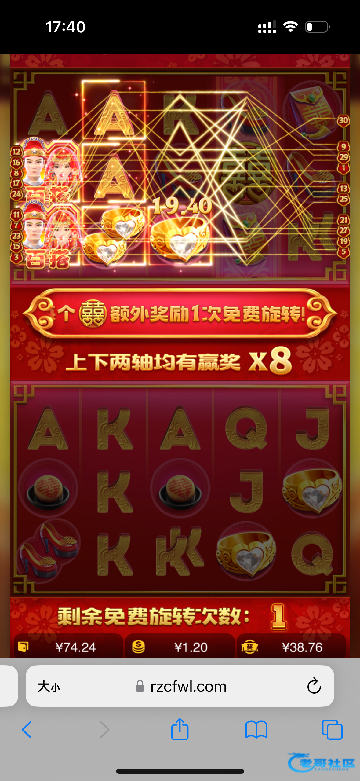 女王和双喜水大的一比,进洞就是1.2百倍