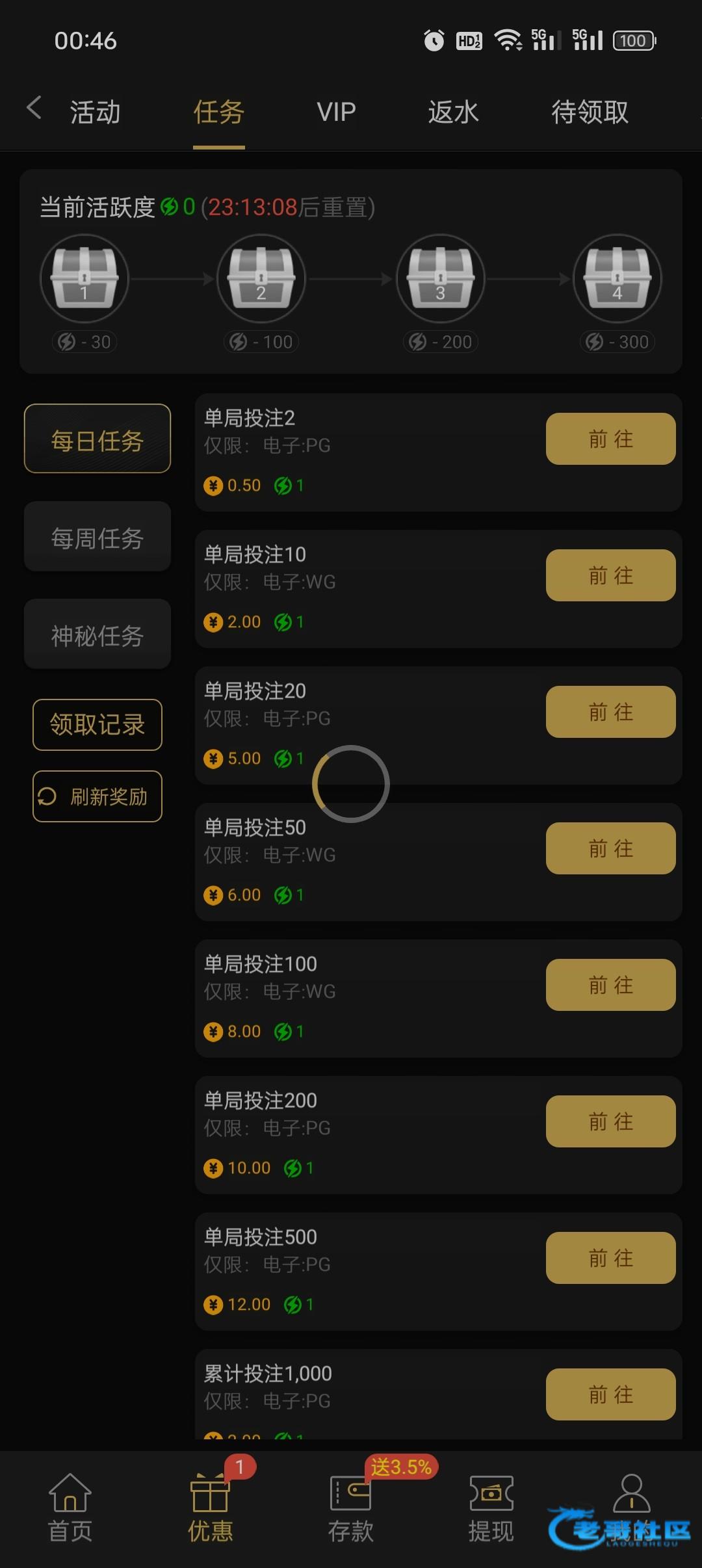 没有这个任务,但是100出了400