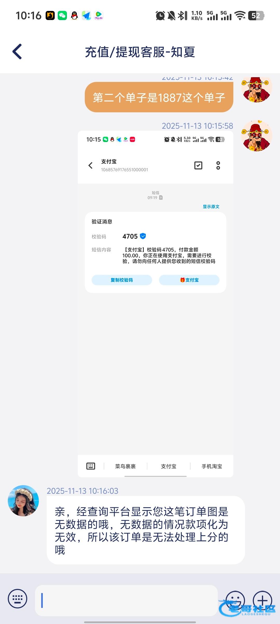 支付宝话费充值 然后一直没到 去问他们 他们说是空单 商户那边查询不到 拉的单 自己跳转的网页付款 最后来一句查不到 被黑了